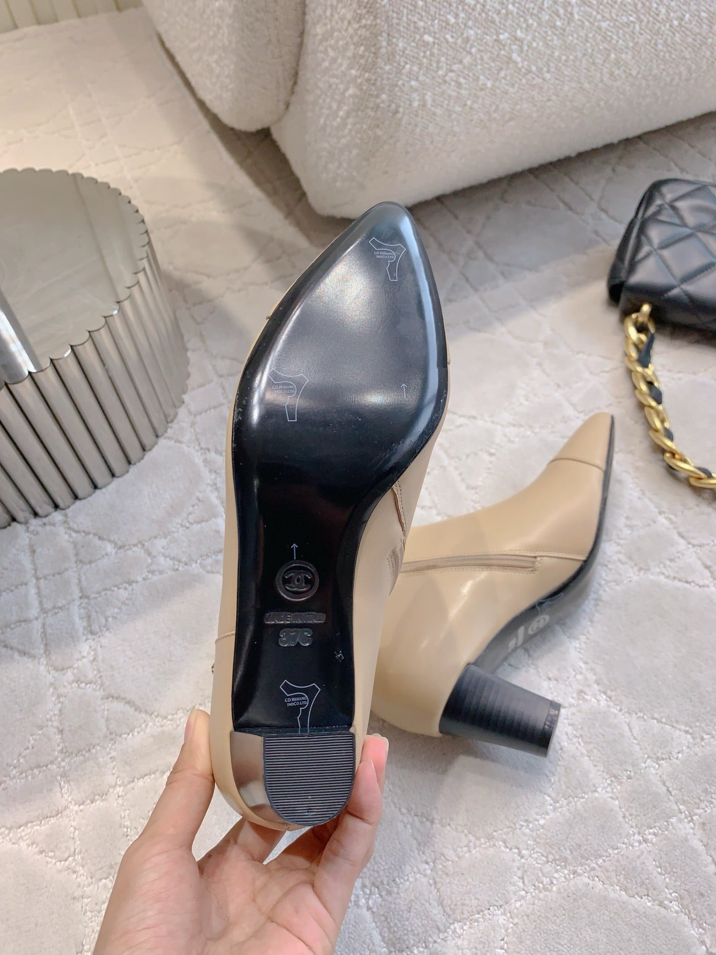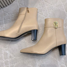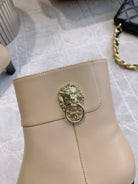 CC 25 Chunky High-heeled Ankle Boots Beige Calfskin 516659
