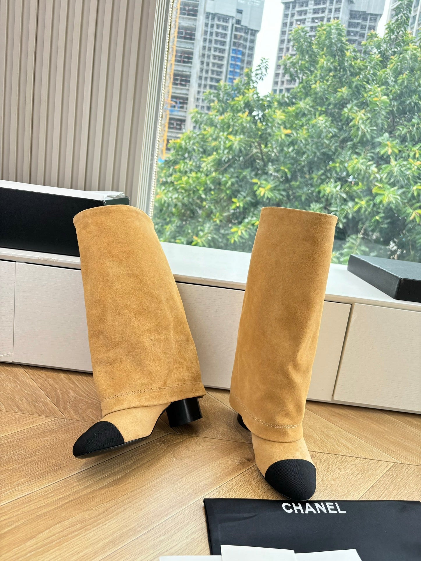 CC 25 High Boot Beige Suede Grosgrain 430340
