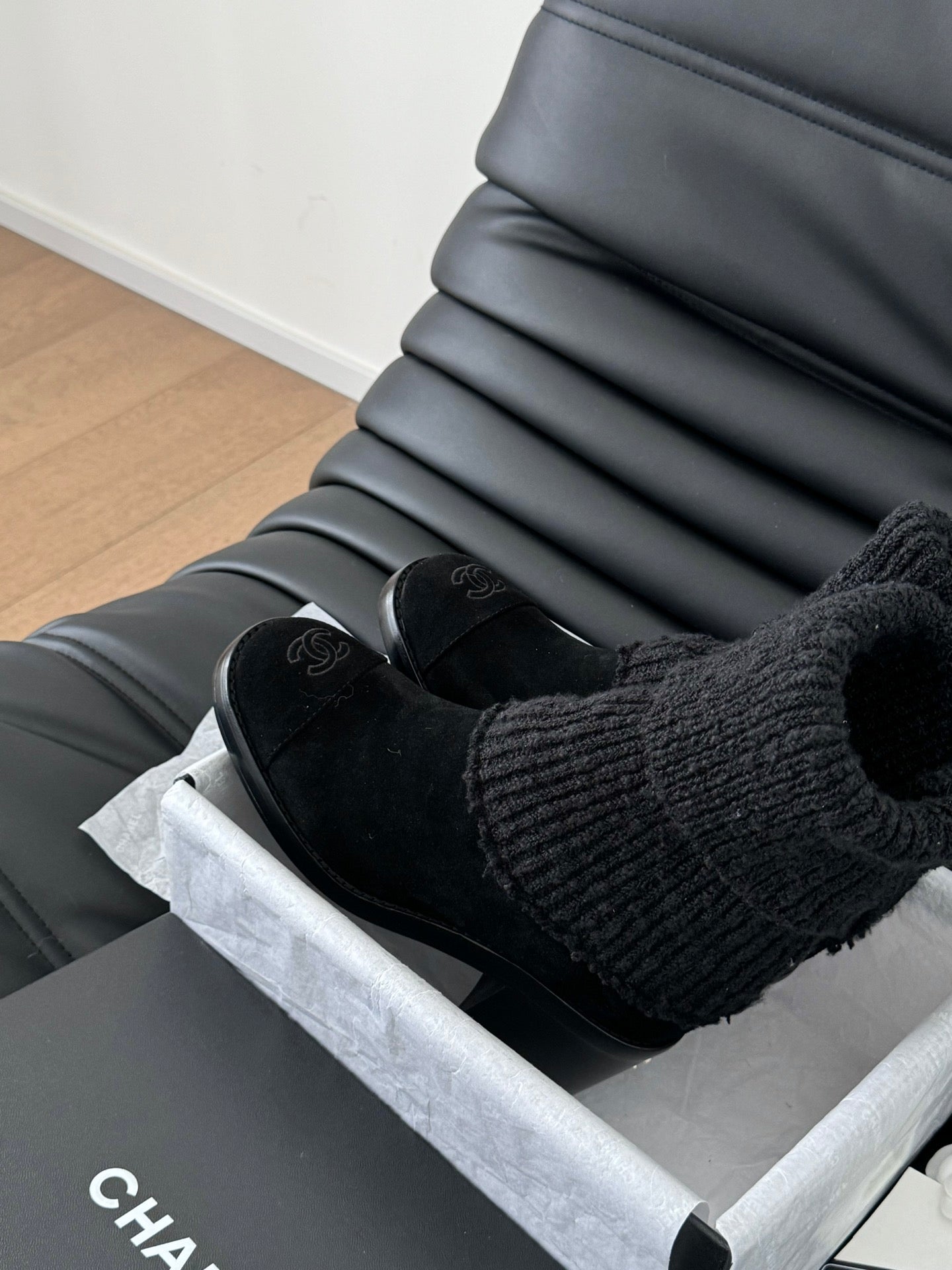 CC 25 new sock boots black knit wool suede 458775