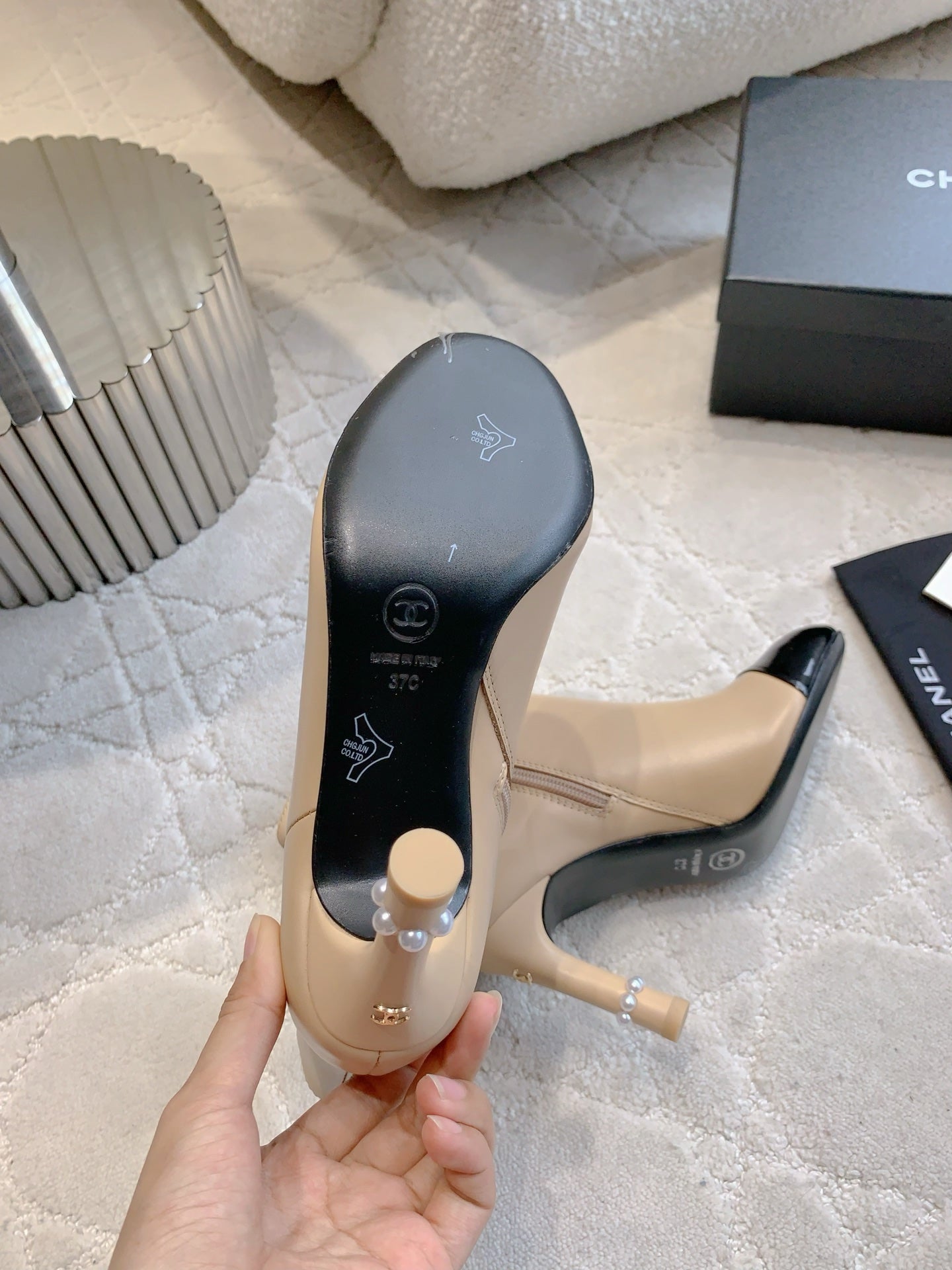 CC 25 Pearl Heel Boot Beige Calfskin 516655