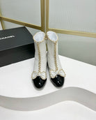 CC Ankle Boot 65 White Calfskin Black Patent Calfksin Leather Strap