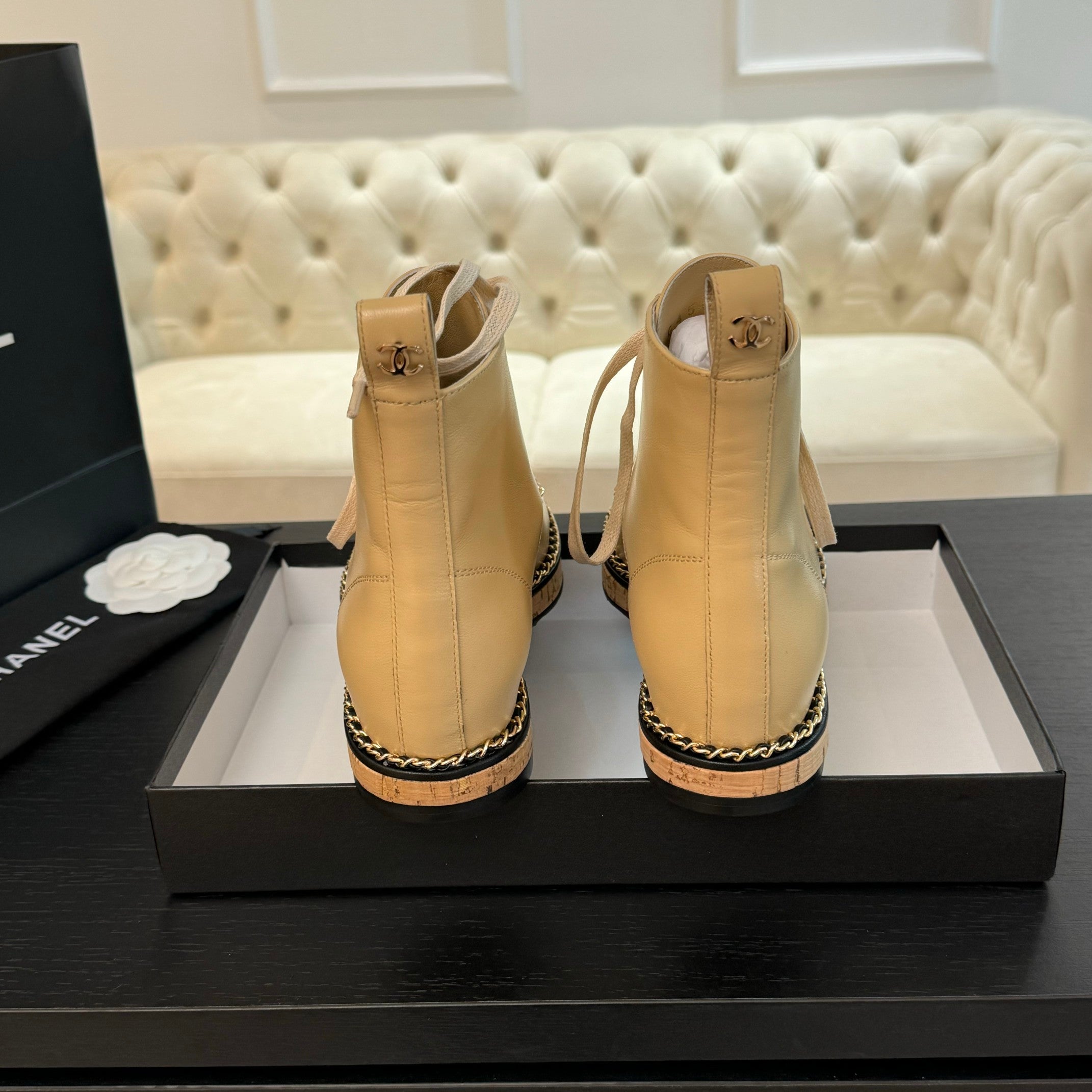 CC Ankle Boots Beige With Chain Calfskin