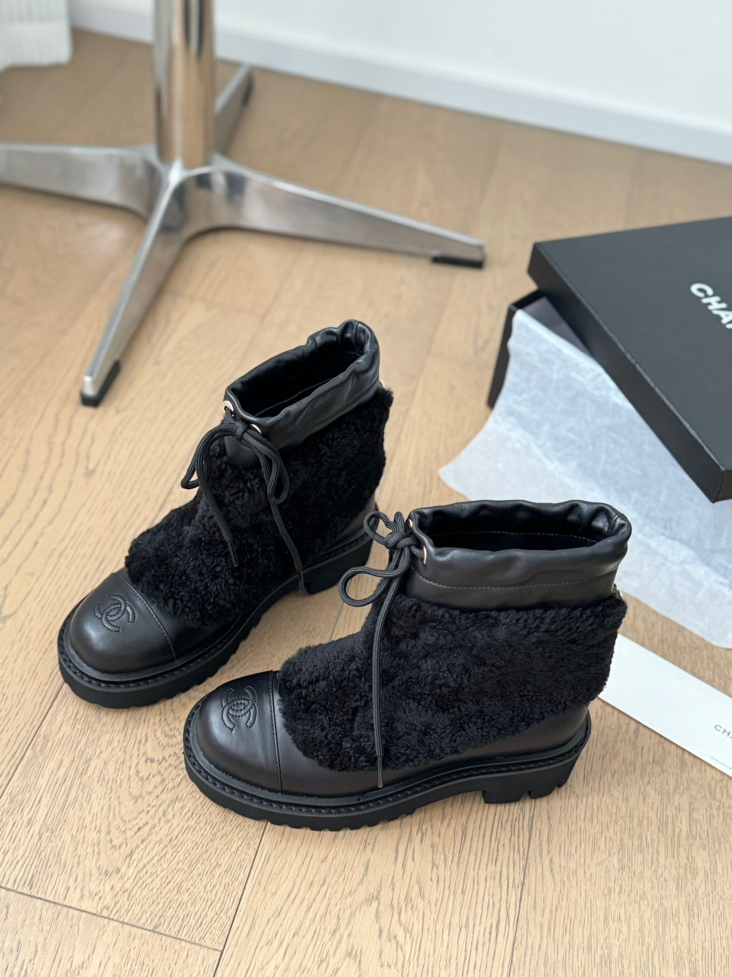 CC Ankle Boots Black Calfskin And Fleece