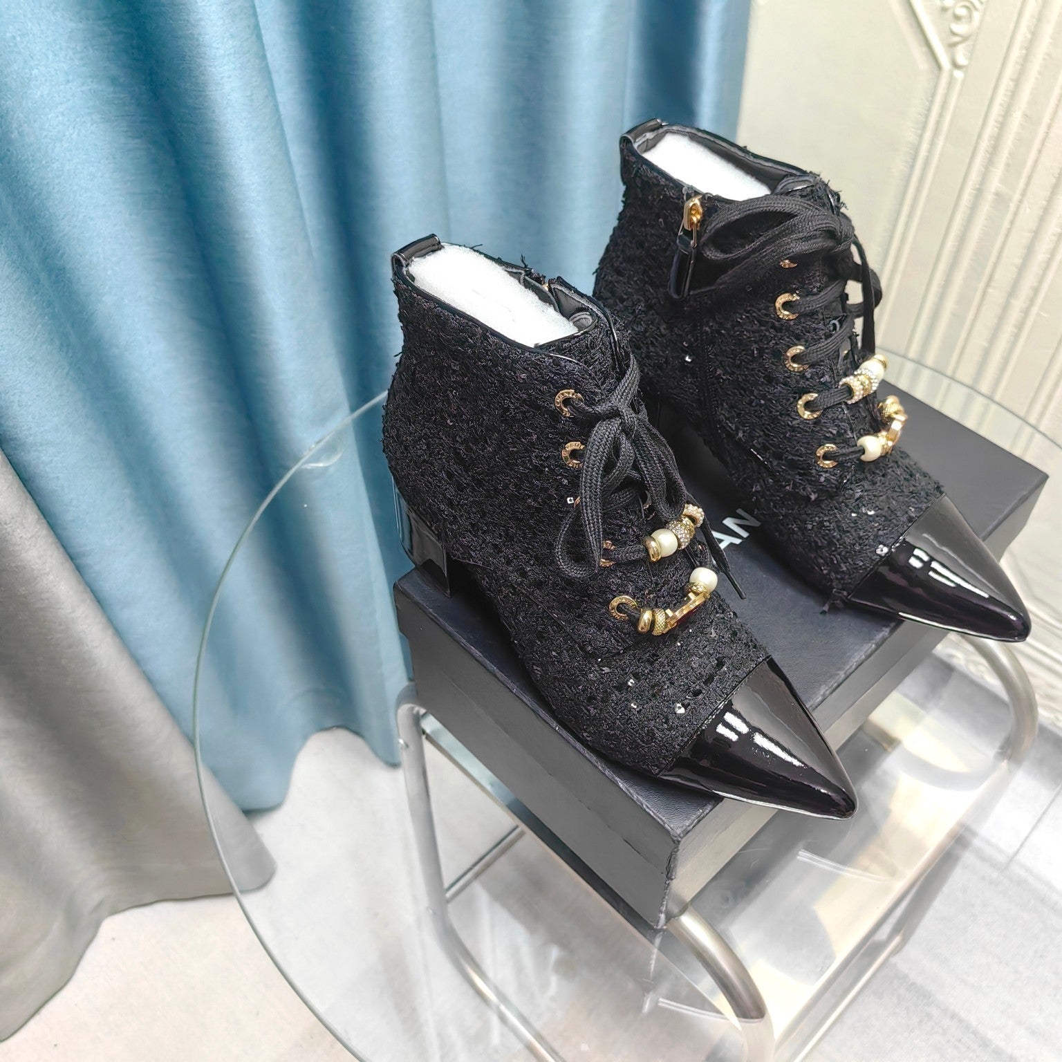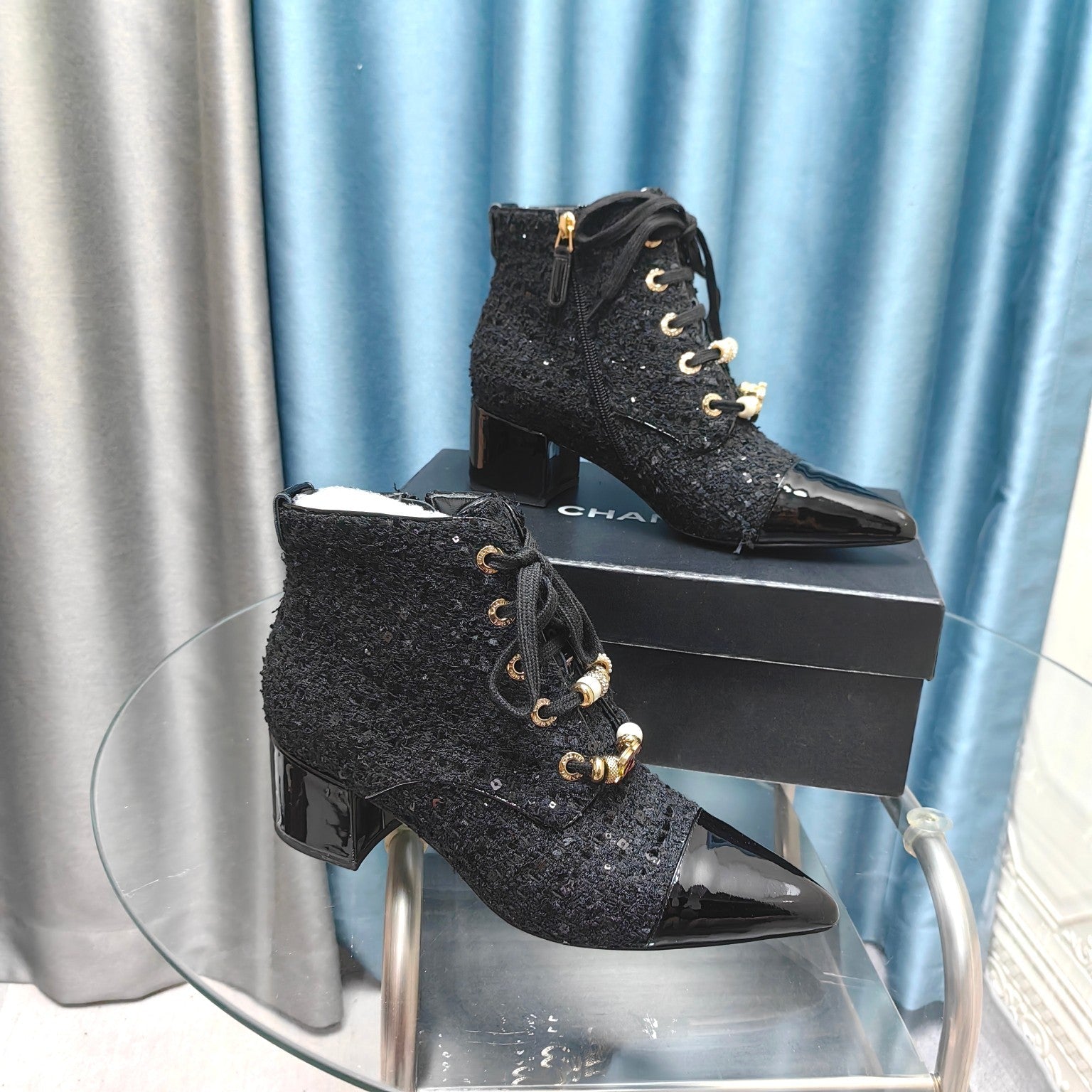 CC Ankle Boots Black Tweed Fabric And Lambskin