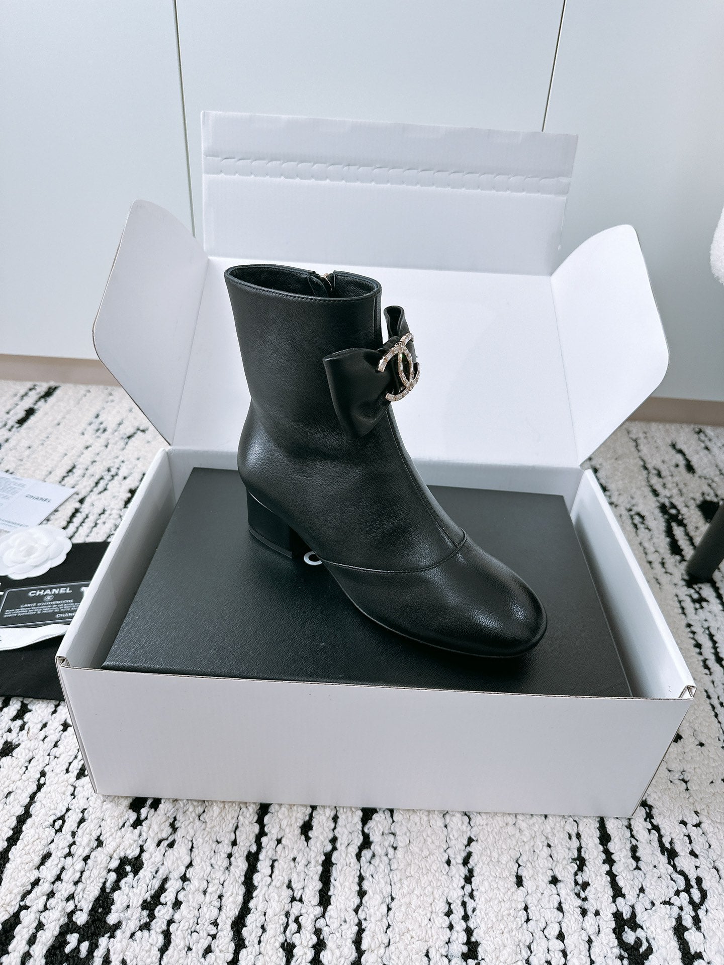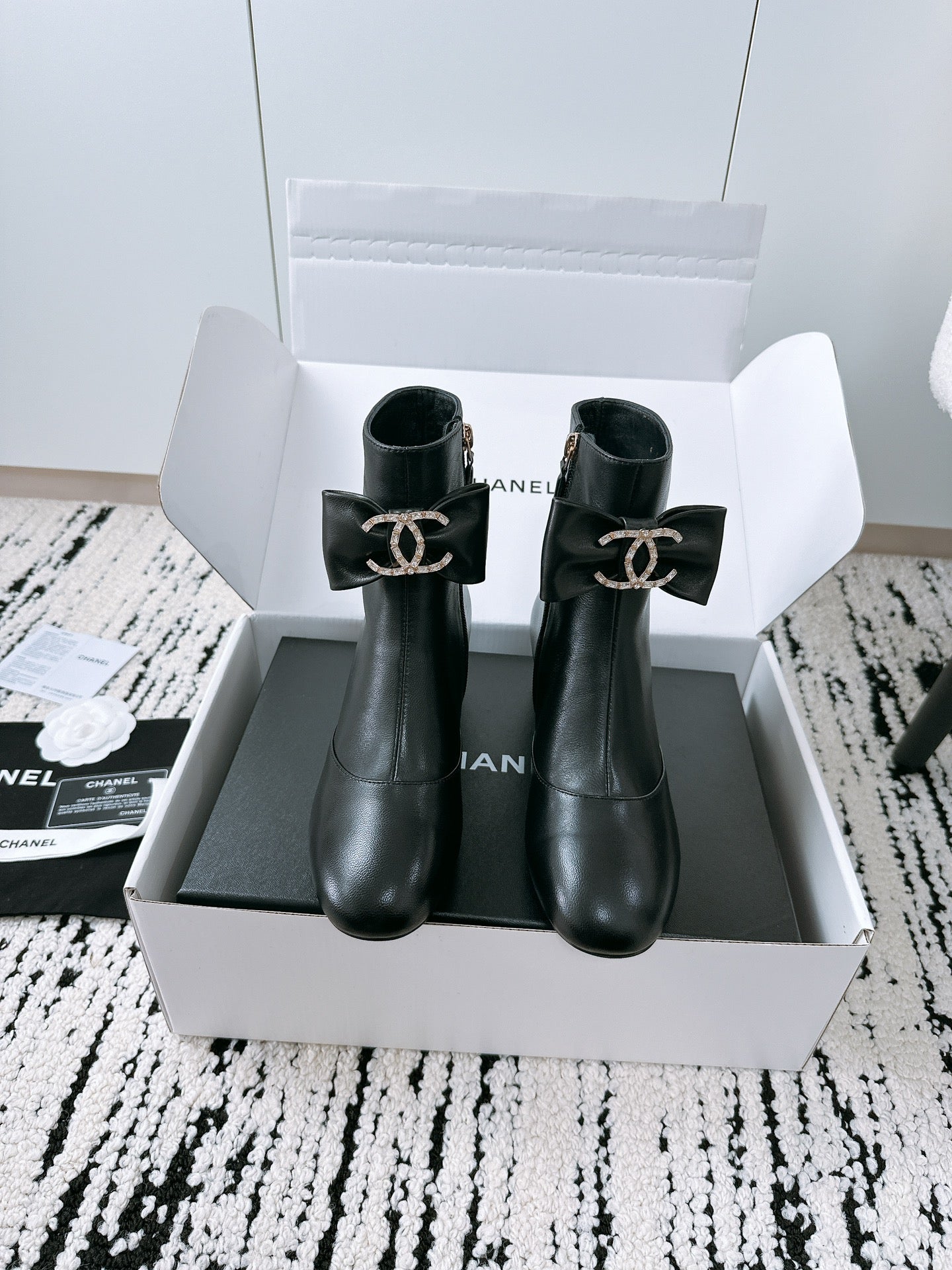 CC Ankle Boots In Black Cowhide With Bow Tie 144661