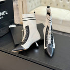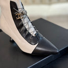 CC Ankle Boots White Black Chain Wool And Lambskin