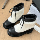 CC CHUNKY BOOTS IN WHITE SMOOTH FLEECE AND BLACK CALFSKIN