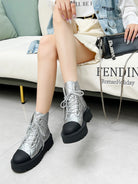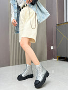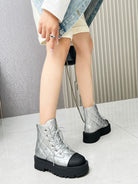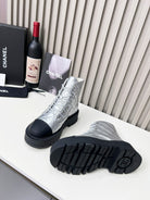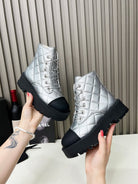 CC Combat Boots In Silver Quilted Lambskin 944579