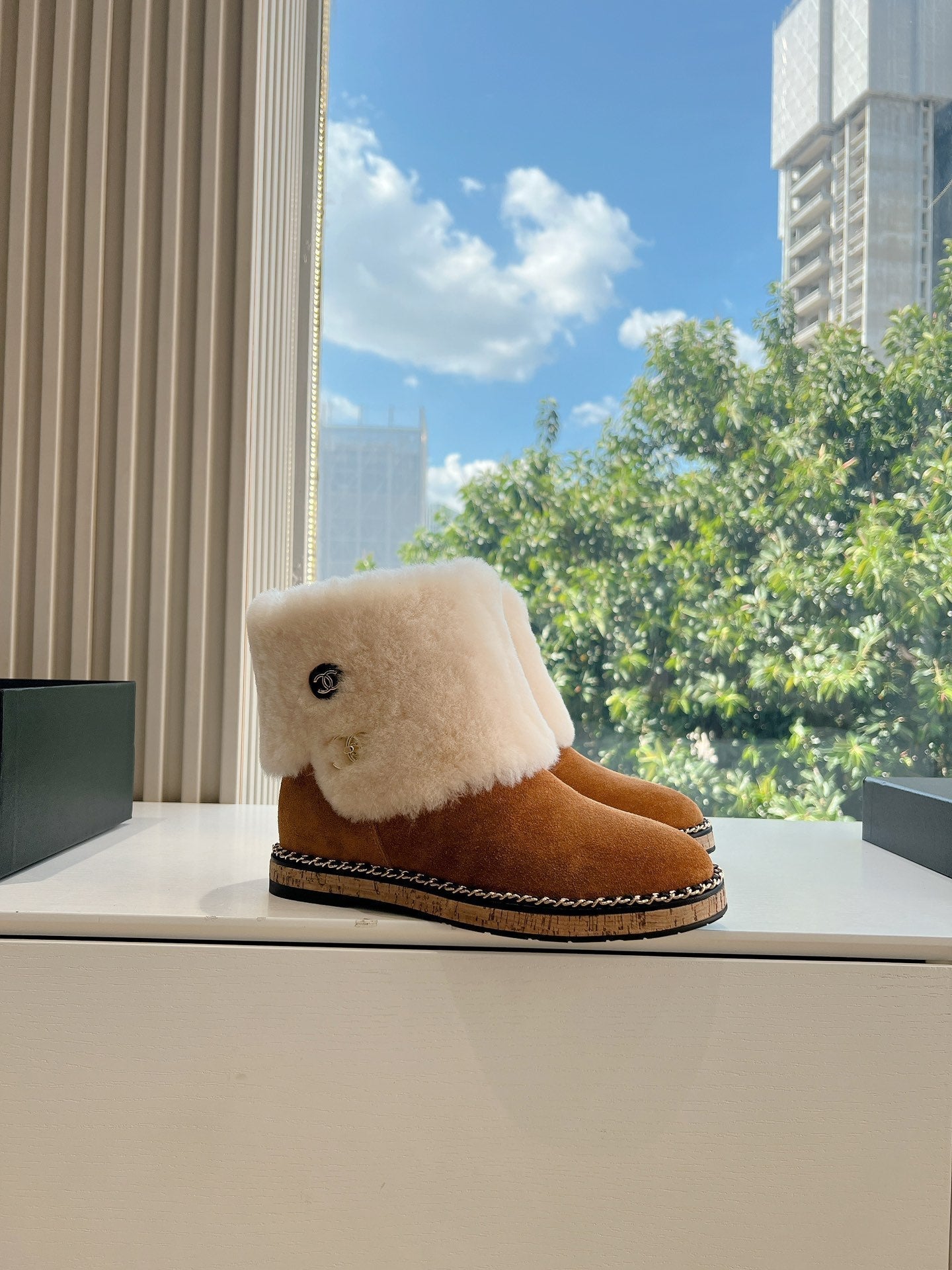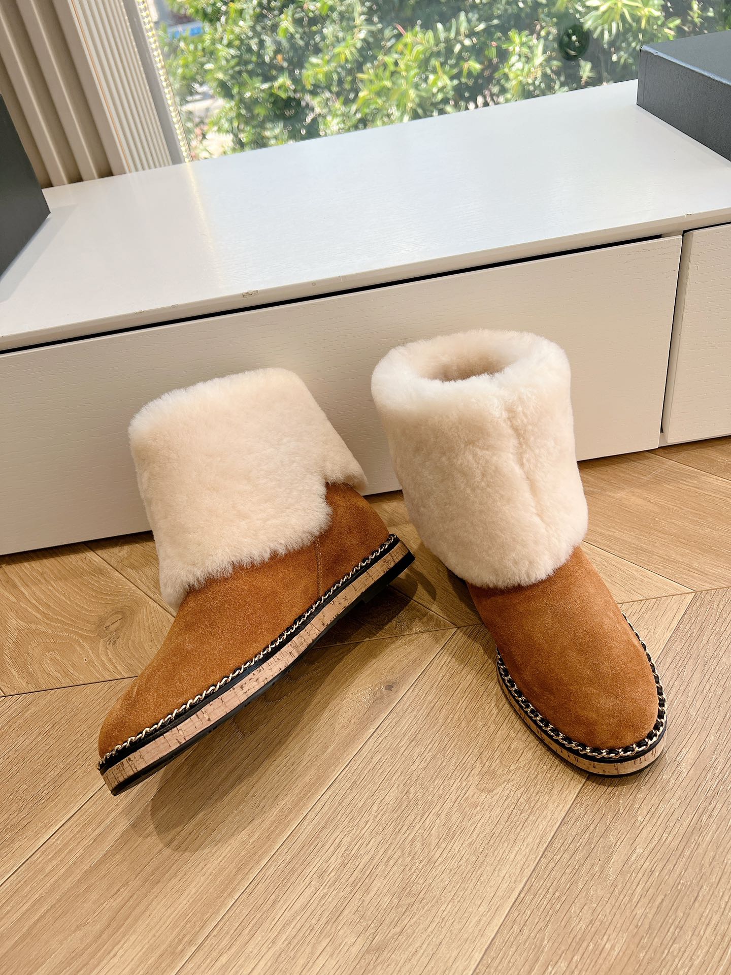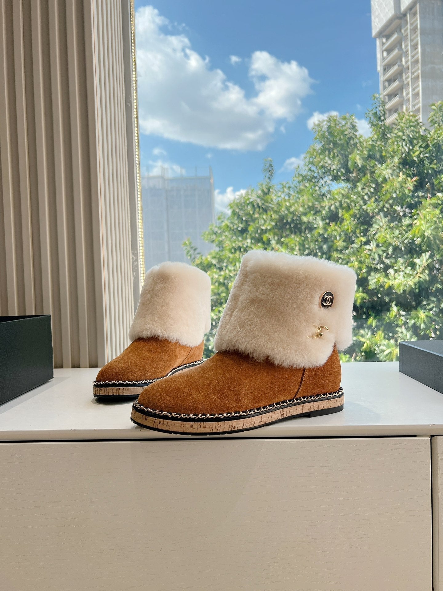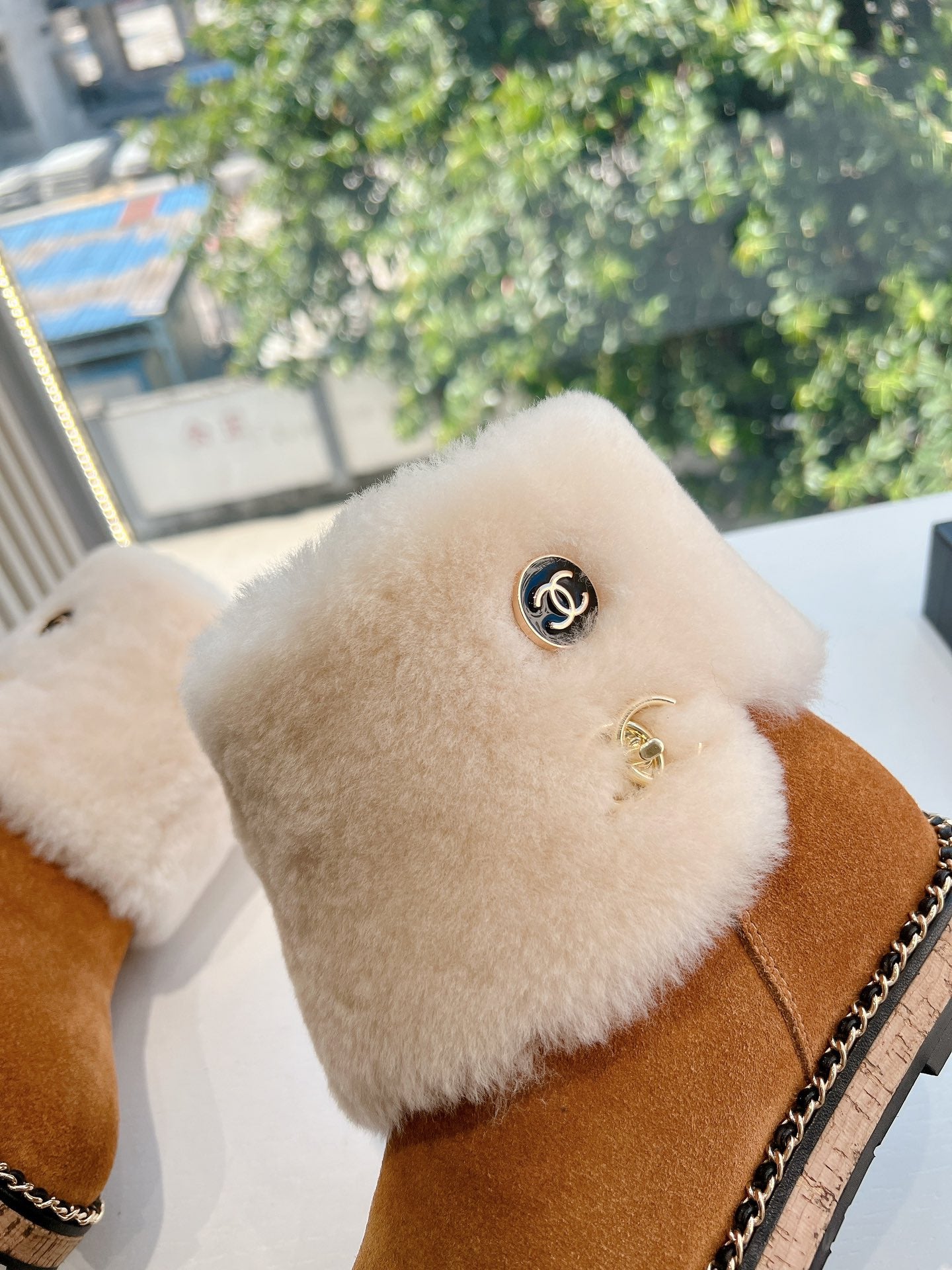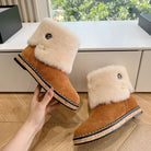 CC Flat Ankle Boots Yellow Brown With Chain Suede And Fleece