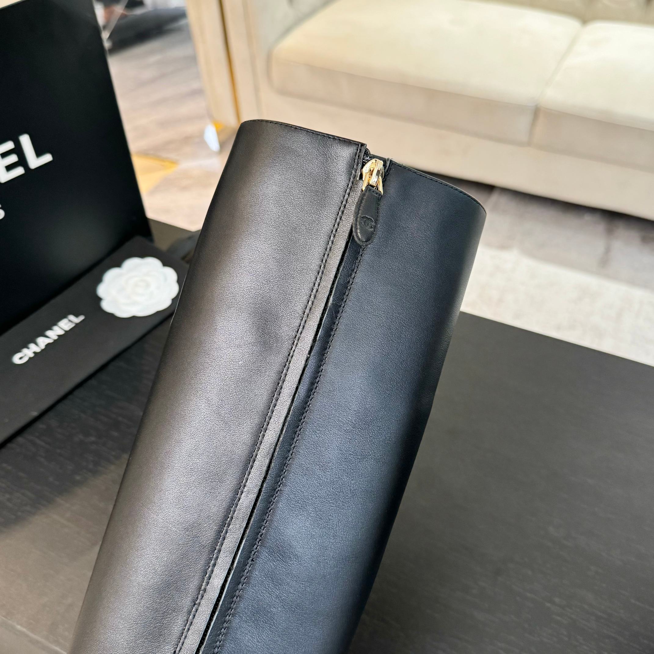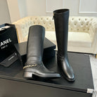 CC High Boots 30mm Plain Black Chain Cowhide