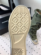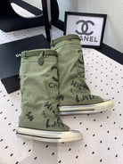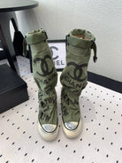 CC High-Top Canvas Boots Khaki Green Black Denim Fabric 938051