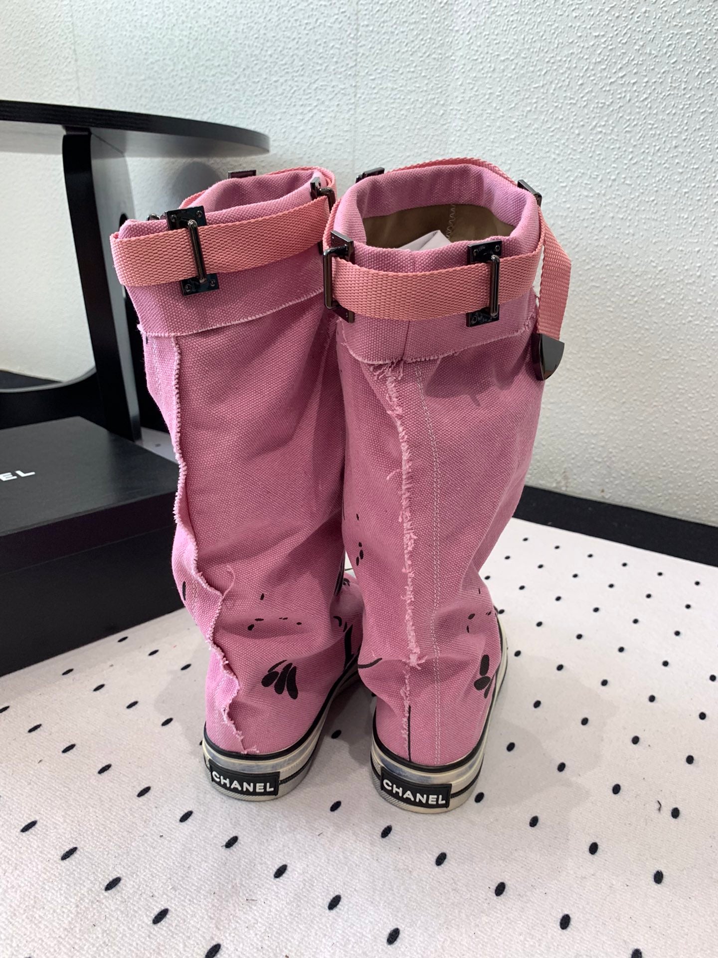 CC High-Top Canvas Boots Pink Black Denim Fabric 938048