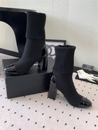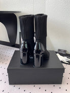 CC Short Boots 85mm Black Wool Mix Glossy Cowhide 938068