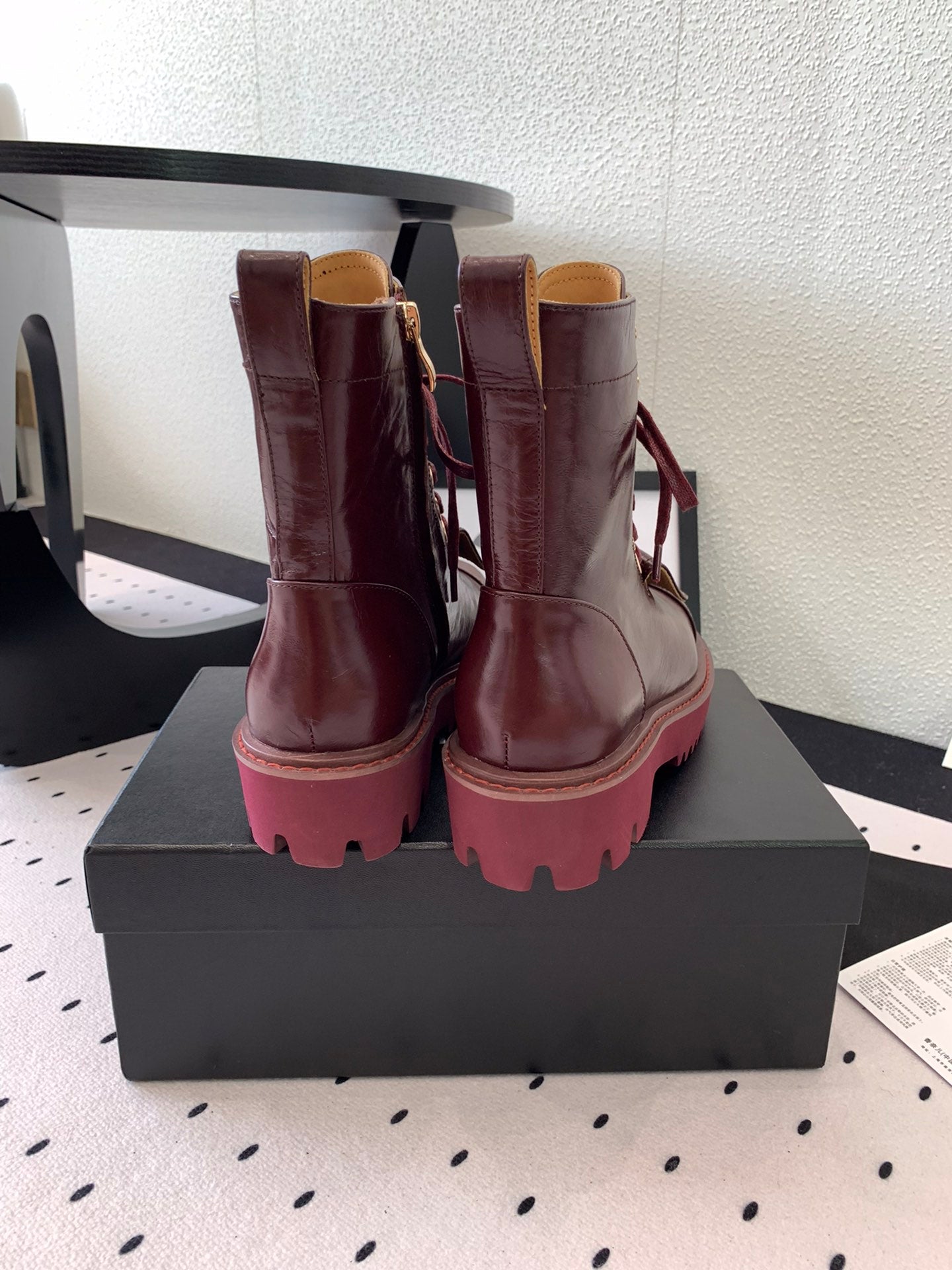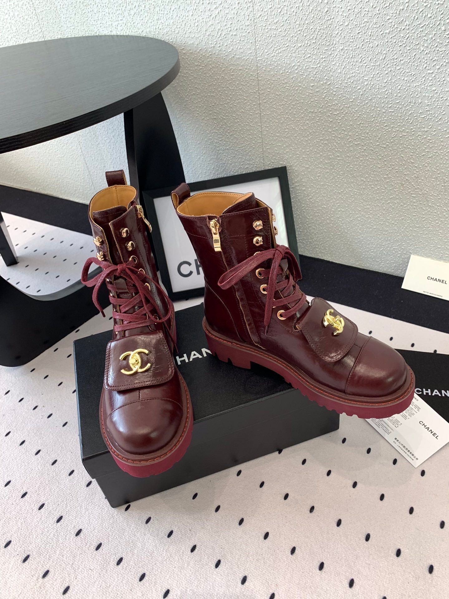 CC Short Boots In Burgundy Logo Print Lambskin 938058