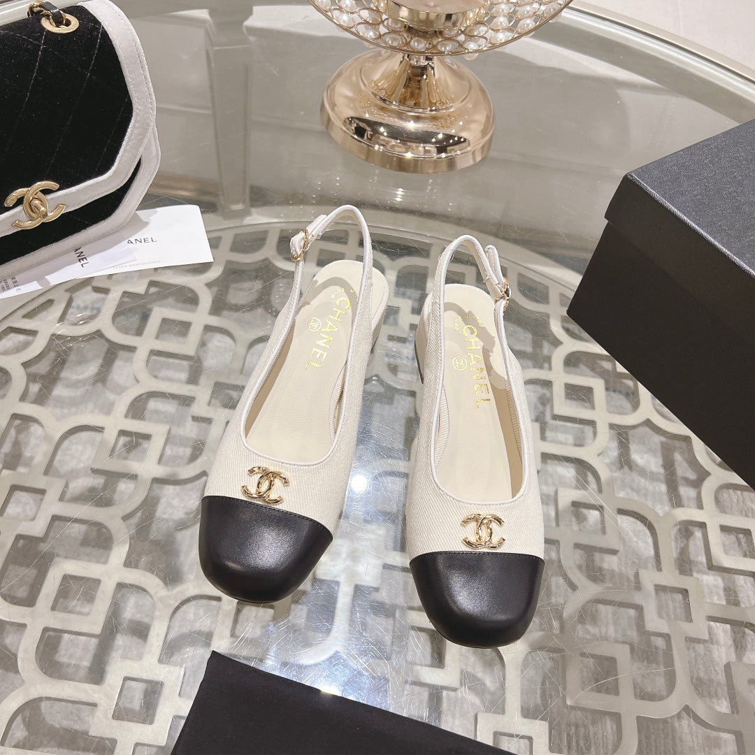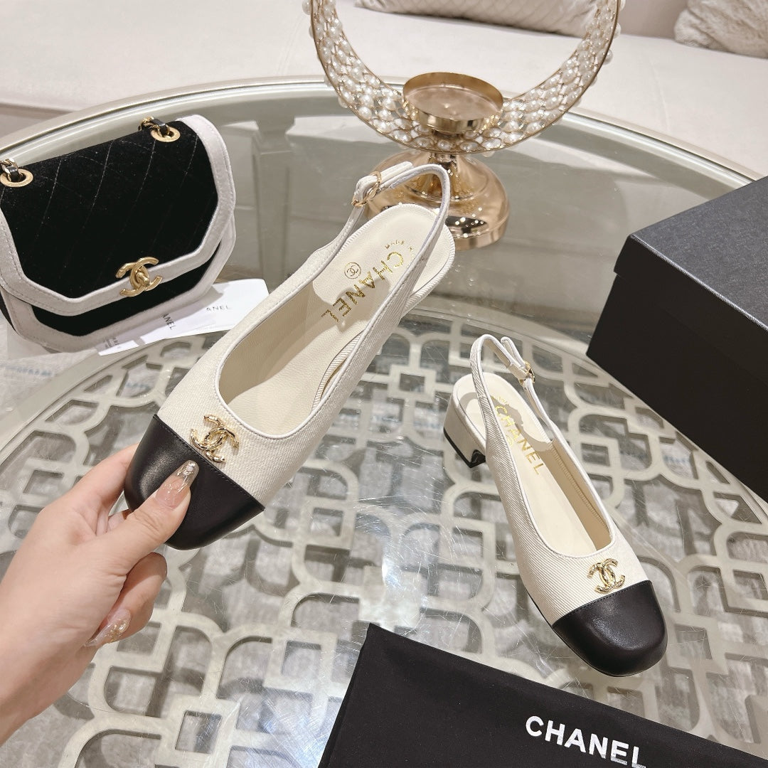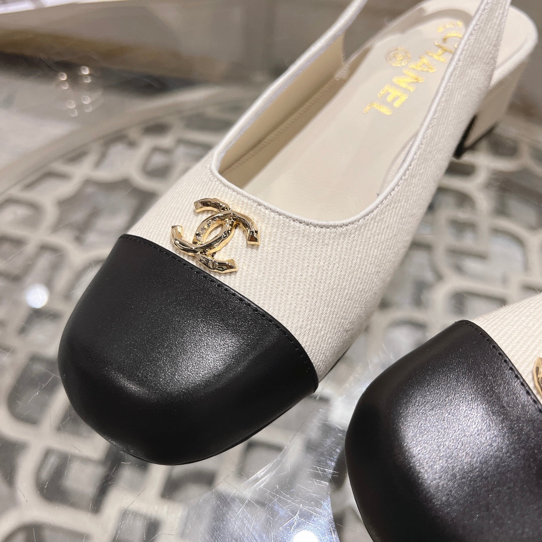 CC Slingbacks 35mm In Ivory White Mix Black Lycra Fabric And Lambskin 943263