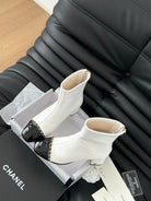 CC Ankle Boot White Calfskin Black Patent Calfskin