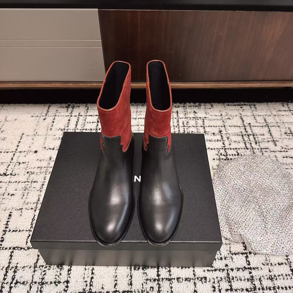 Chanel 25A Winter New Low Boots Black Red Cowhide 393514
