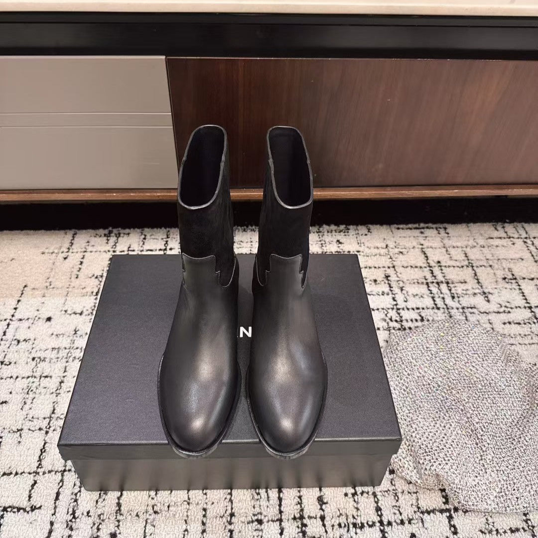 Chanel 25A Winter New Low Boots Black Cowhide 393516