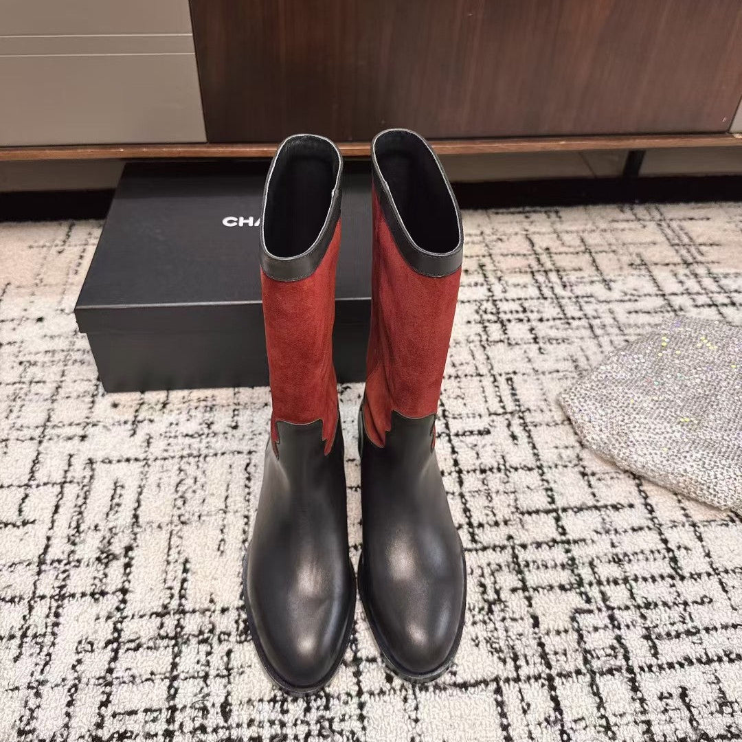 Chanel 25A Winter New Hight Boots Black Red Cowhide 393517