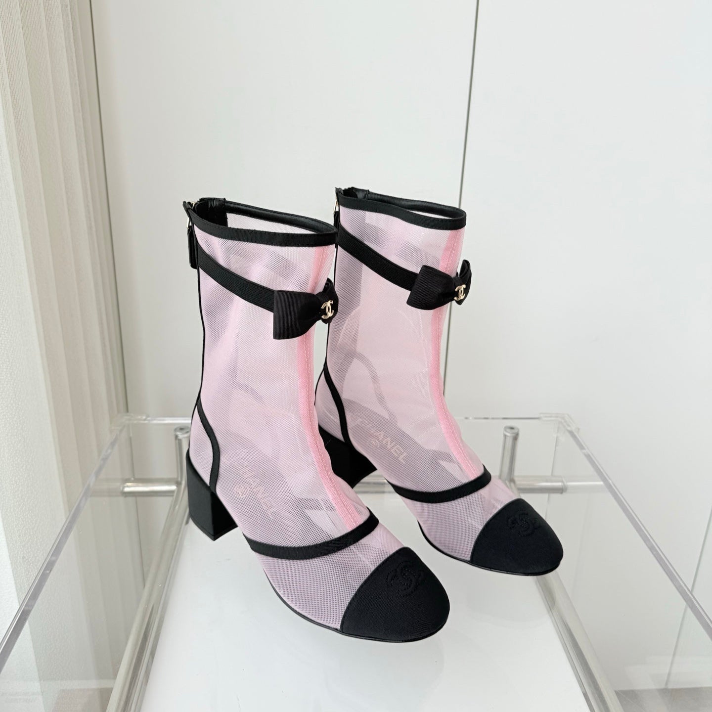 CC 25 Short Boot Light Pink Mesh Black Bow 430321