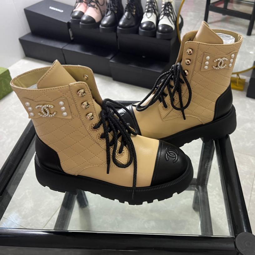 CC Combat Boots Dark Beige Black Quilted Lambskin 944575
