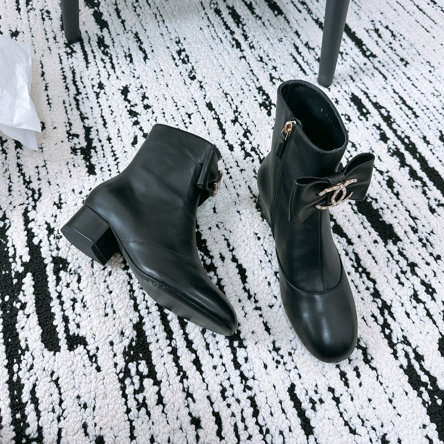 CC Ankle Boots In Black Cowhide With Bow Tie 144661