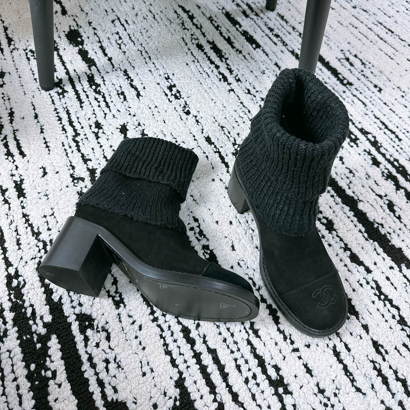 CC Hight Boots Black With Chain Suede And Cowhide 944967