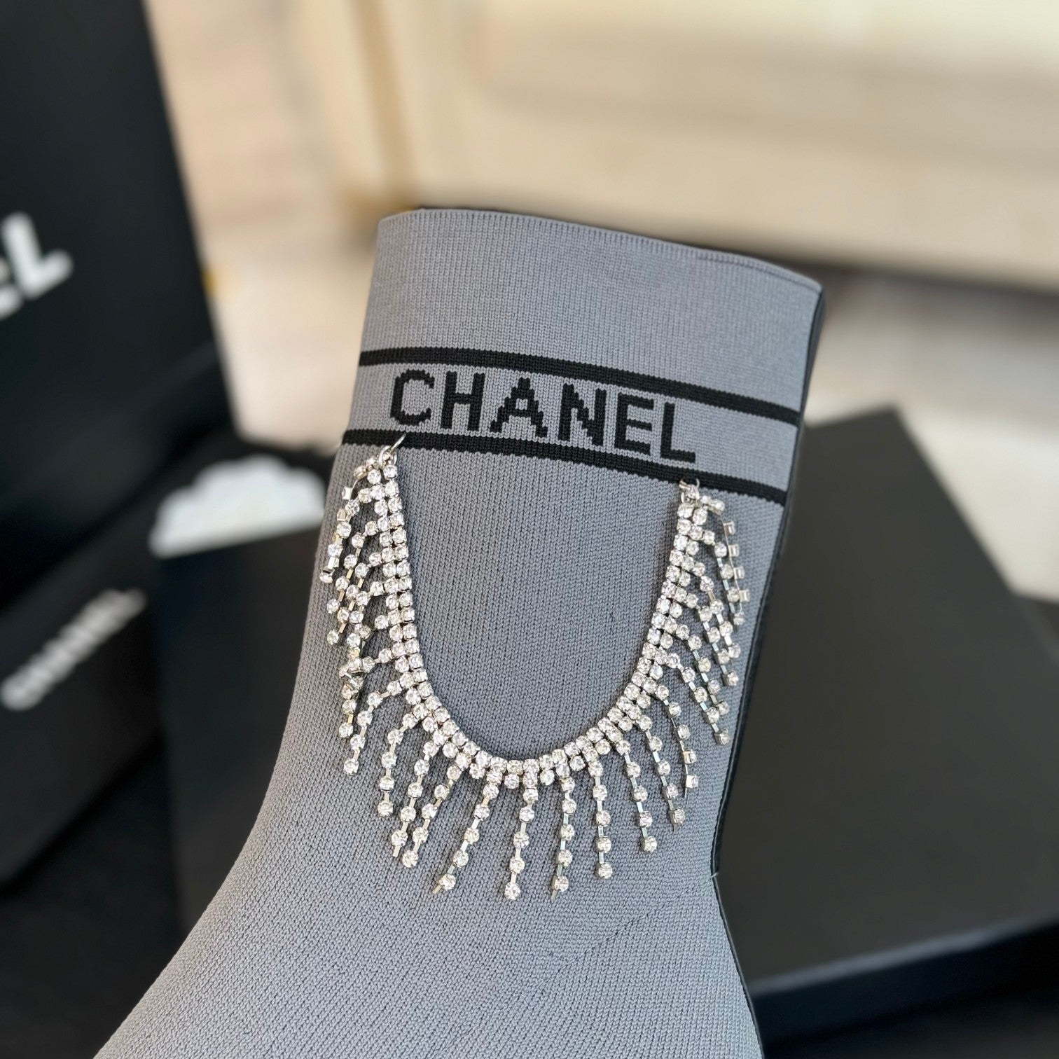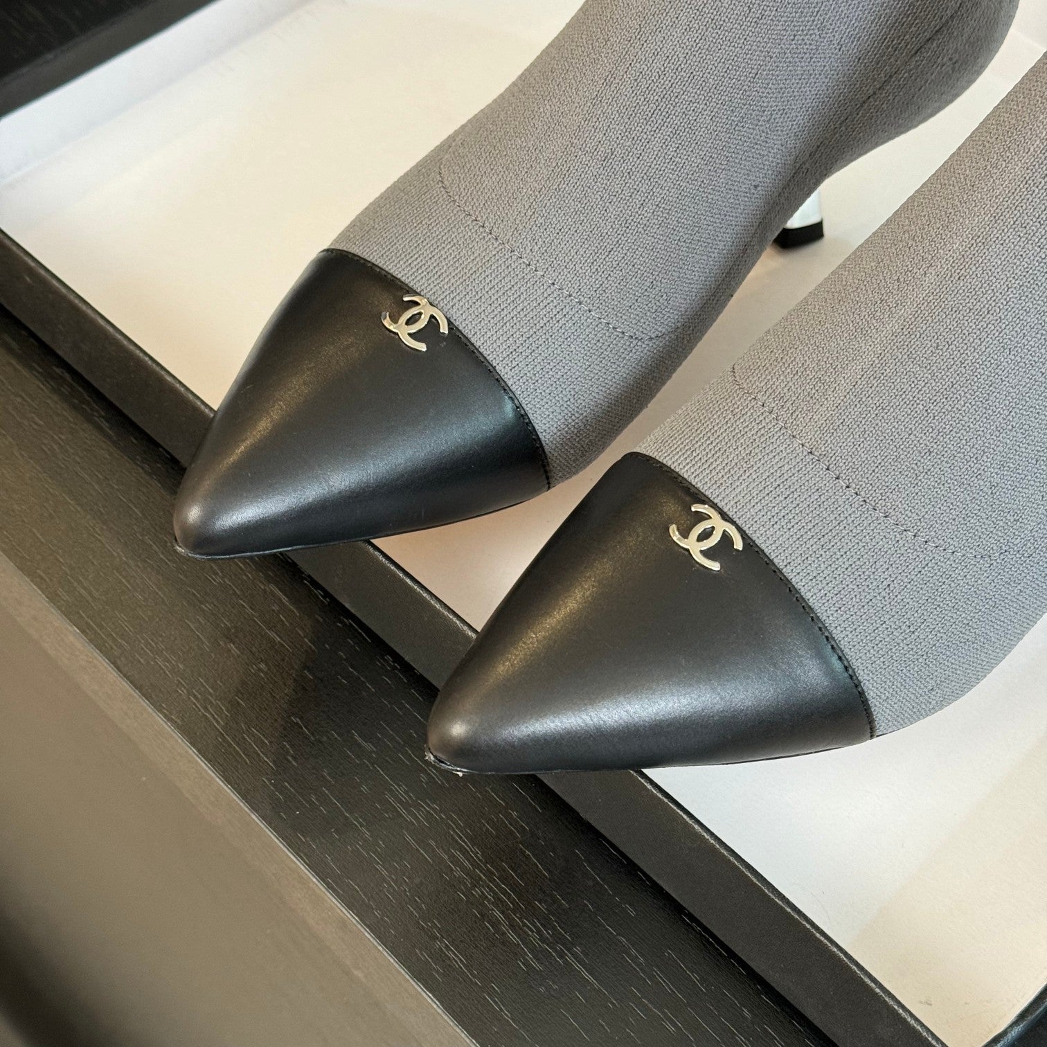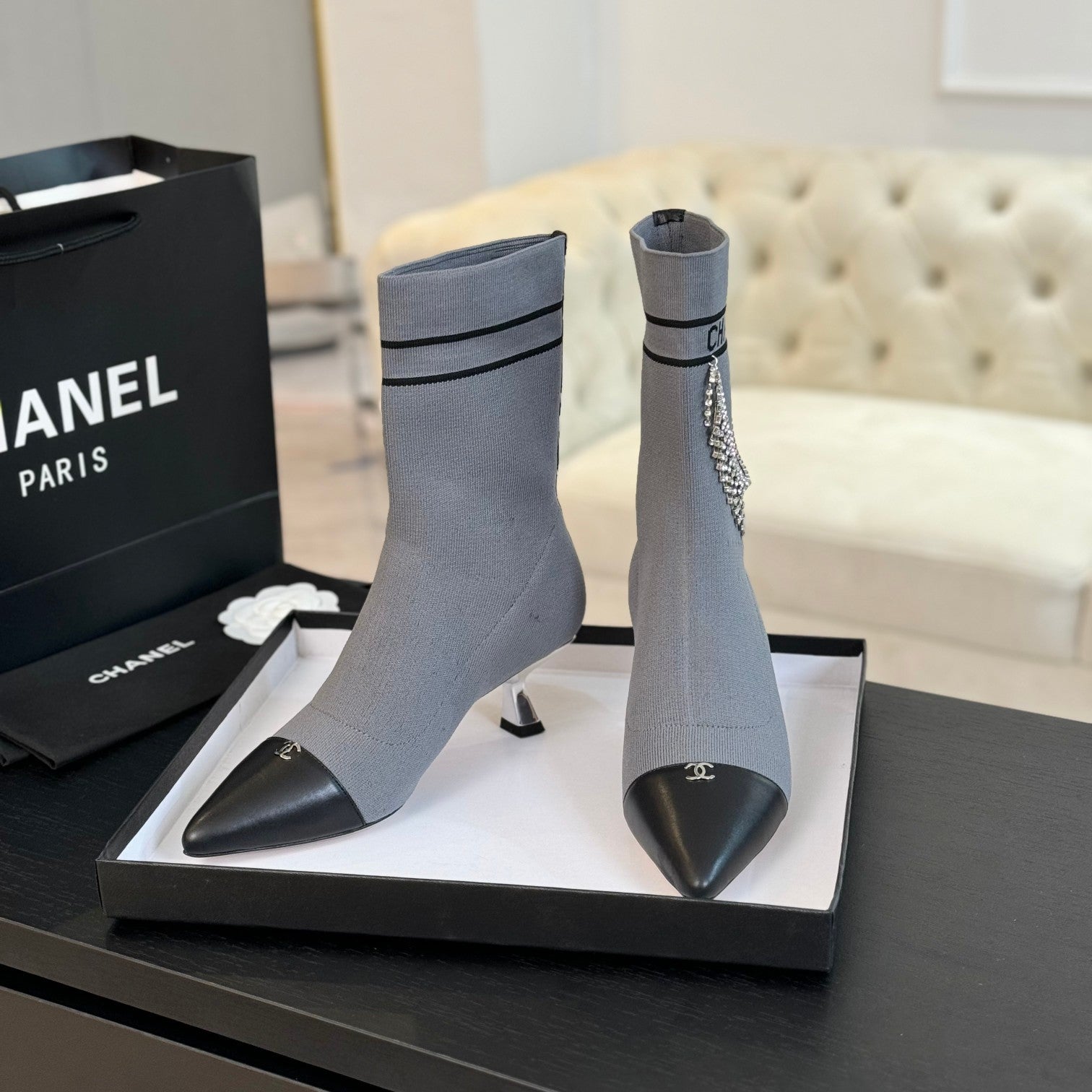 CC Ankle Boots Grey Black Chain Wool And Lambskin