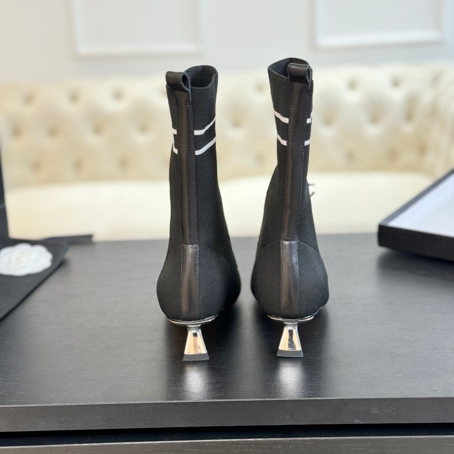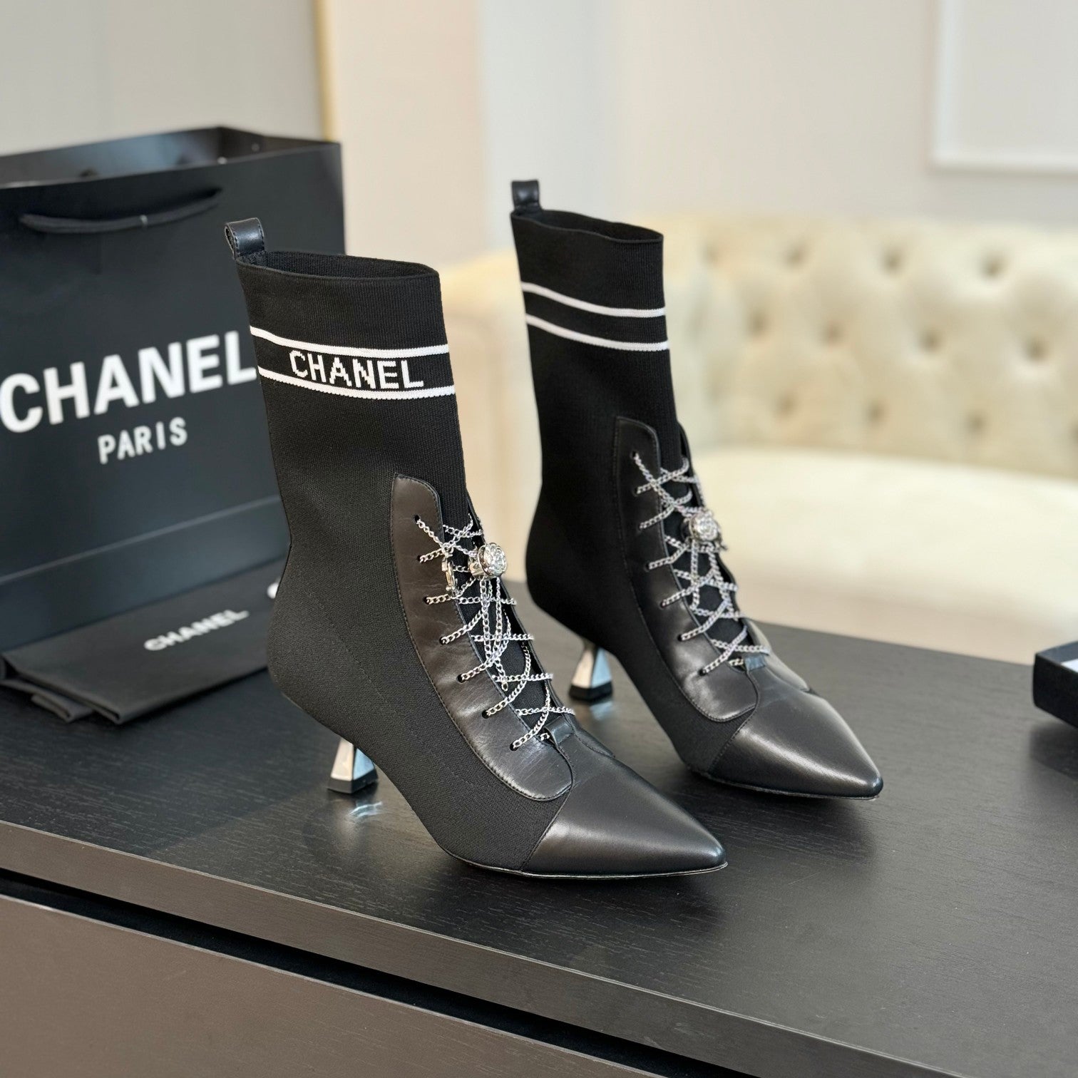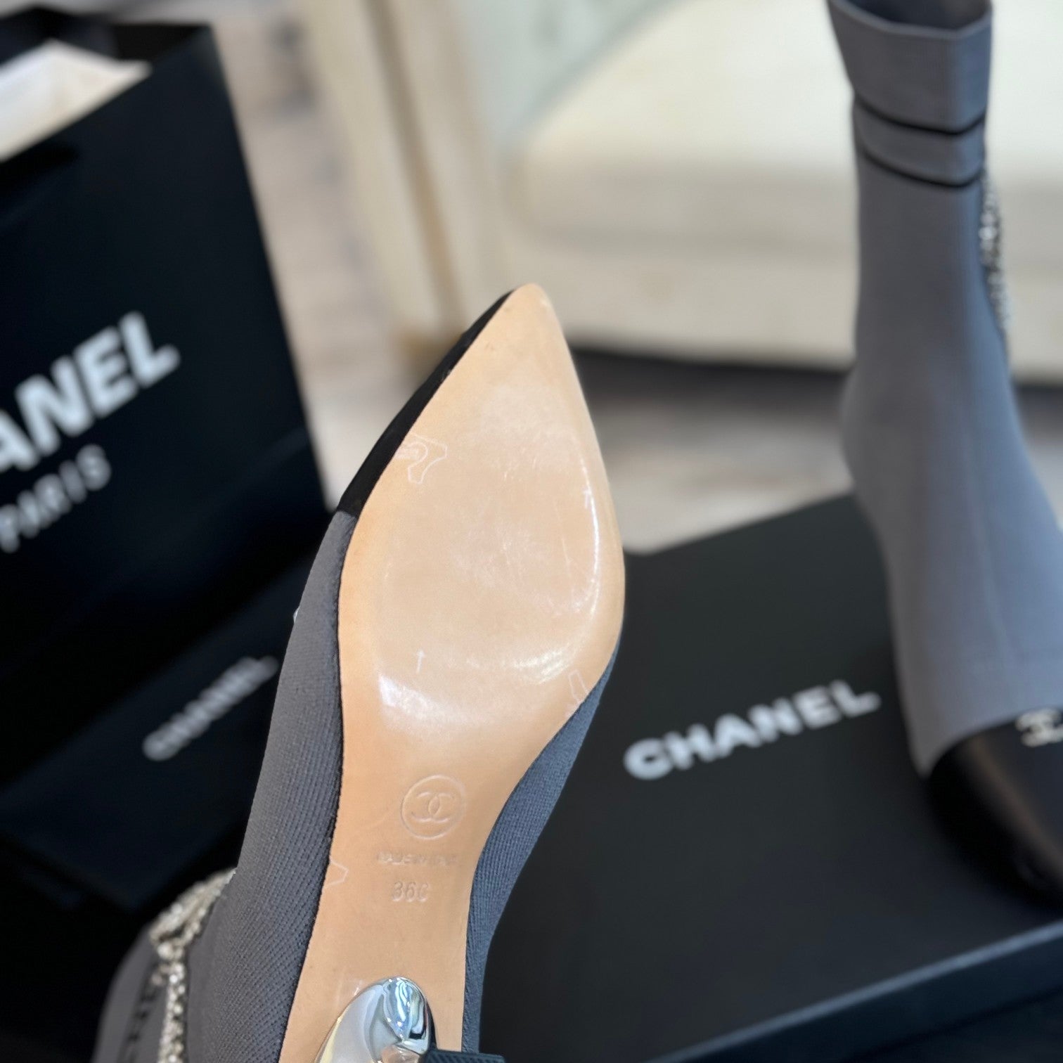 CC Ankle Boots Grey Black Chain Wool And Lambskin