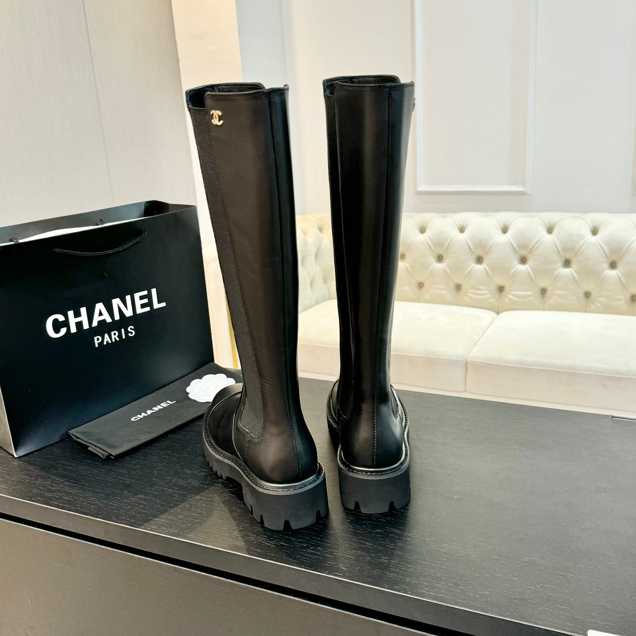 CC High Boots 30mm Glossy Black Chain Cowhide