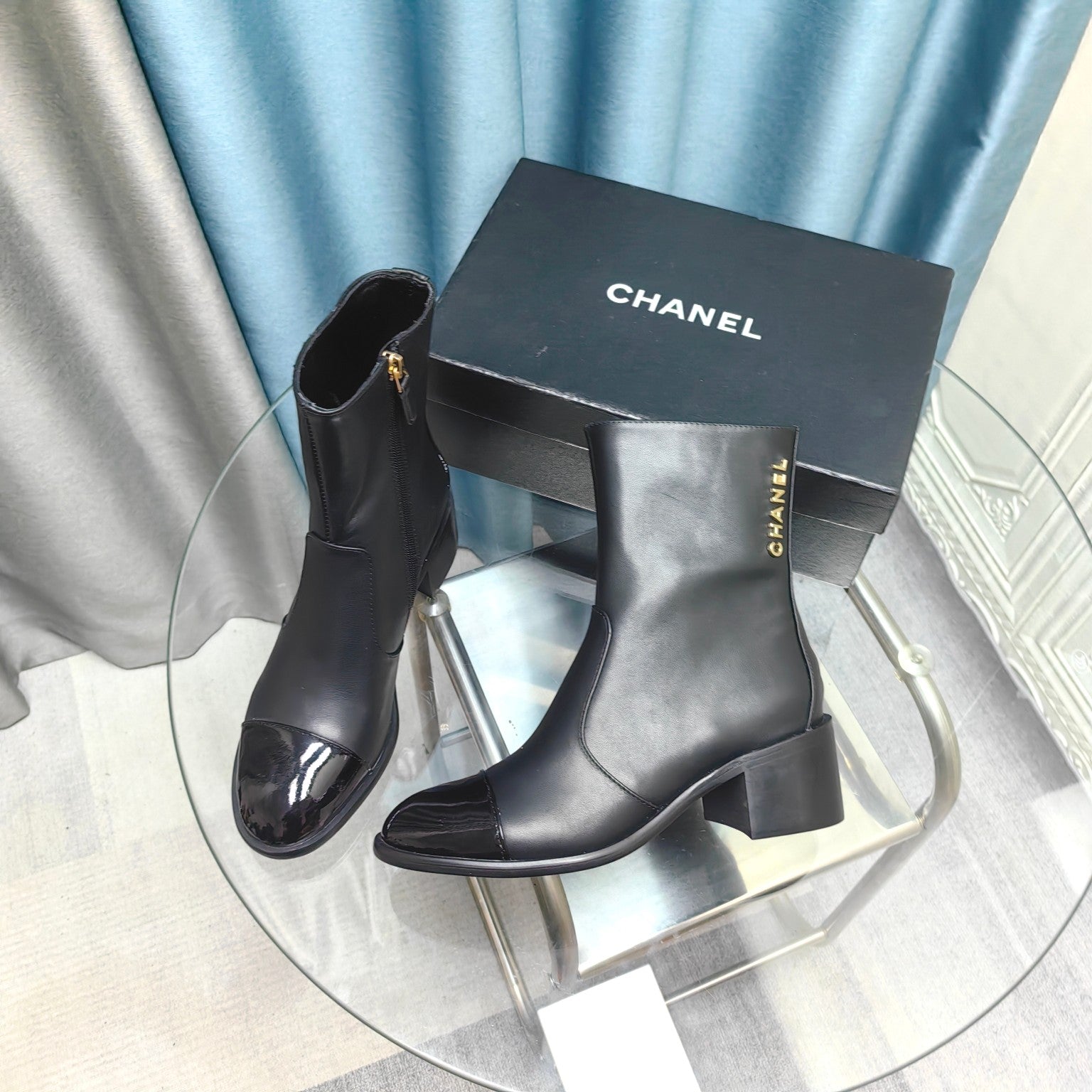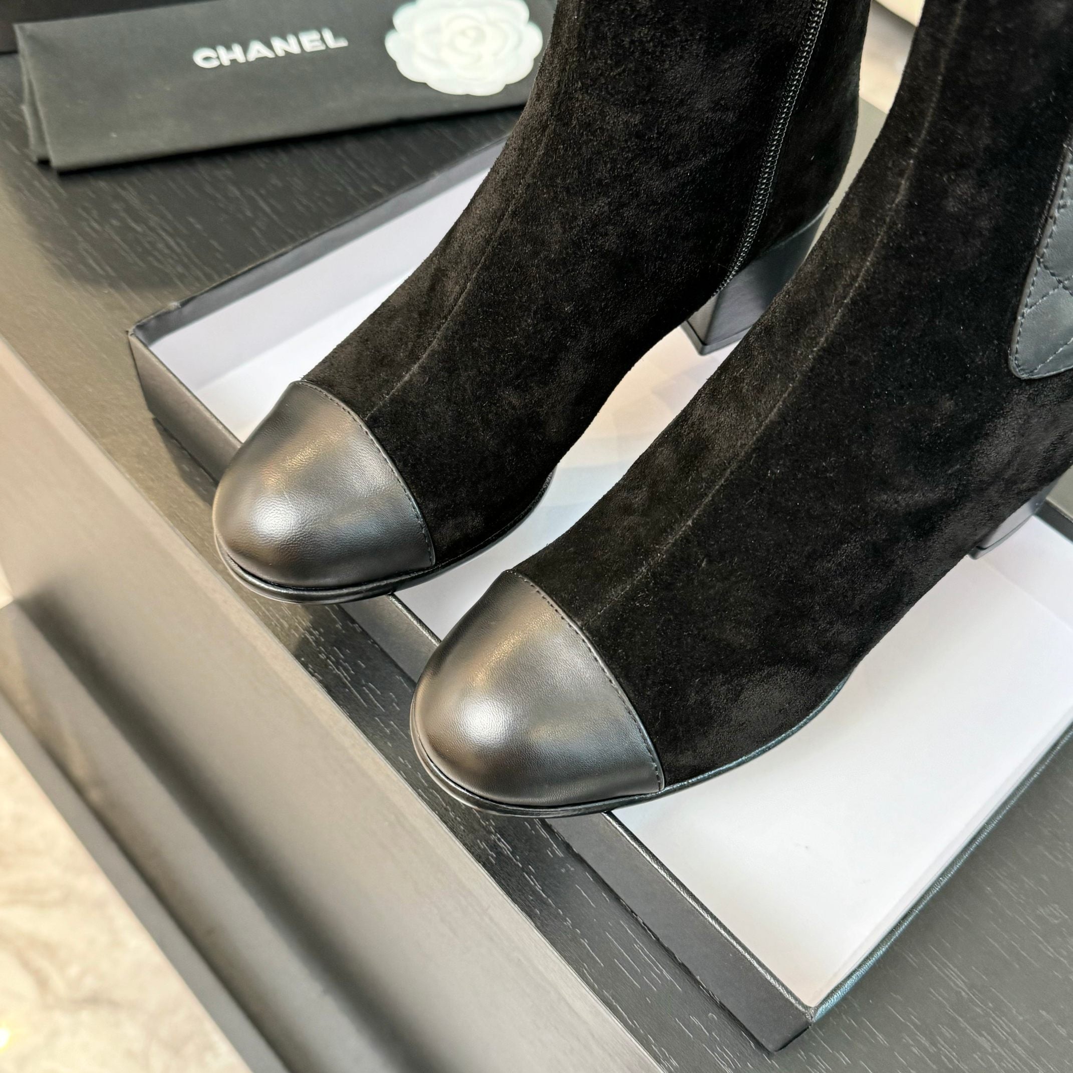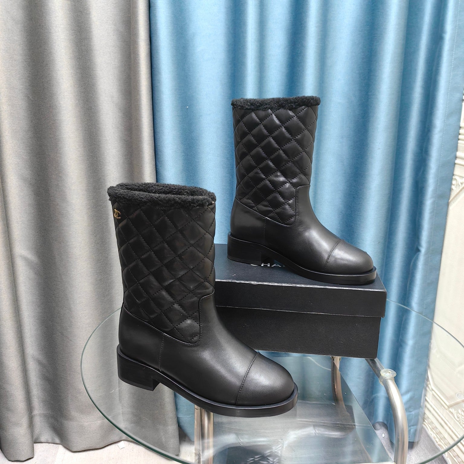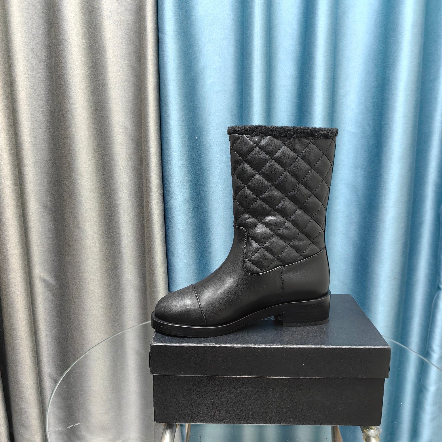 CC Short Boots Black Suede Lining Wool And Lambskin