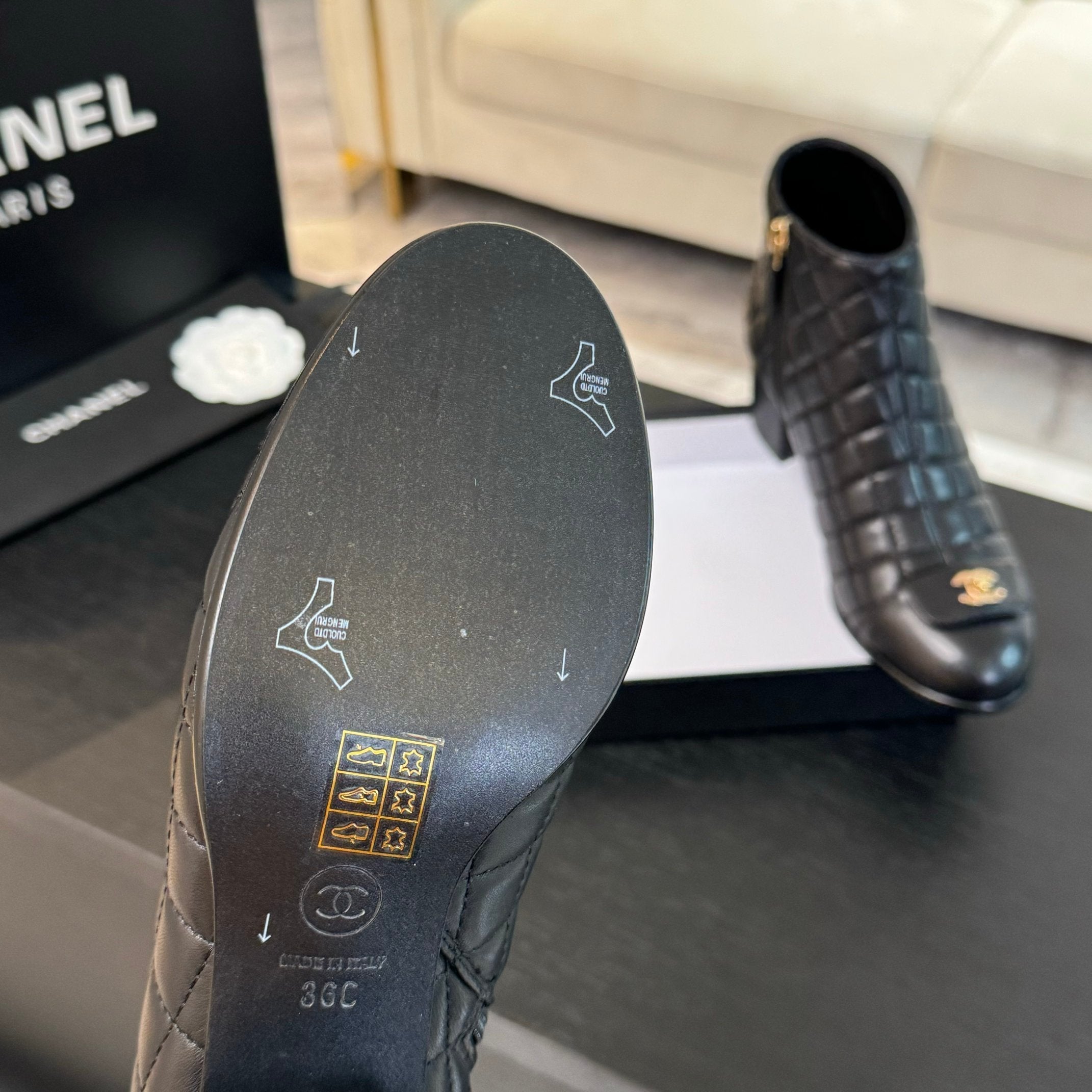 CC Short Boots Black Quilted Calfskin And Lambskin