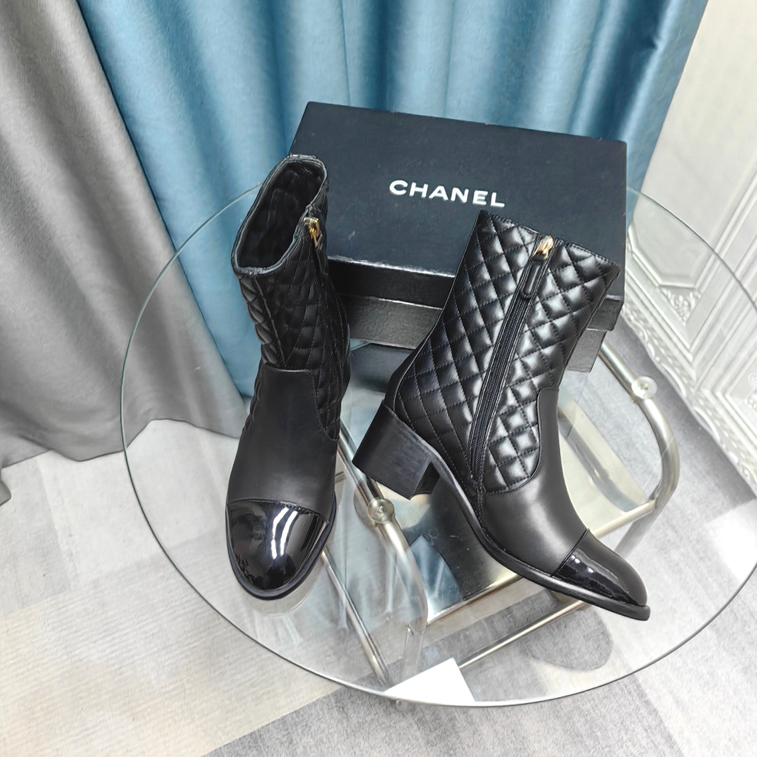 CC Short Boots Black Quilted Cowhide And Lambskin