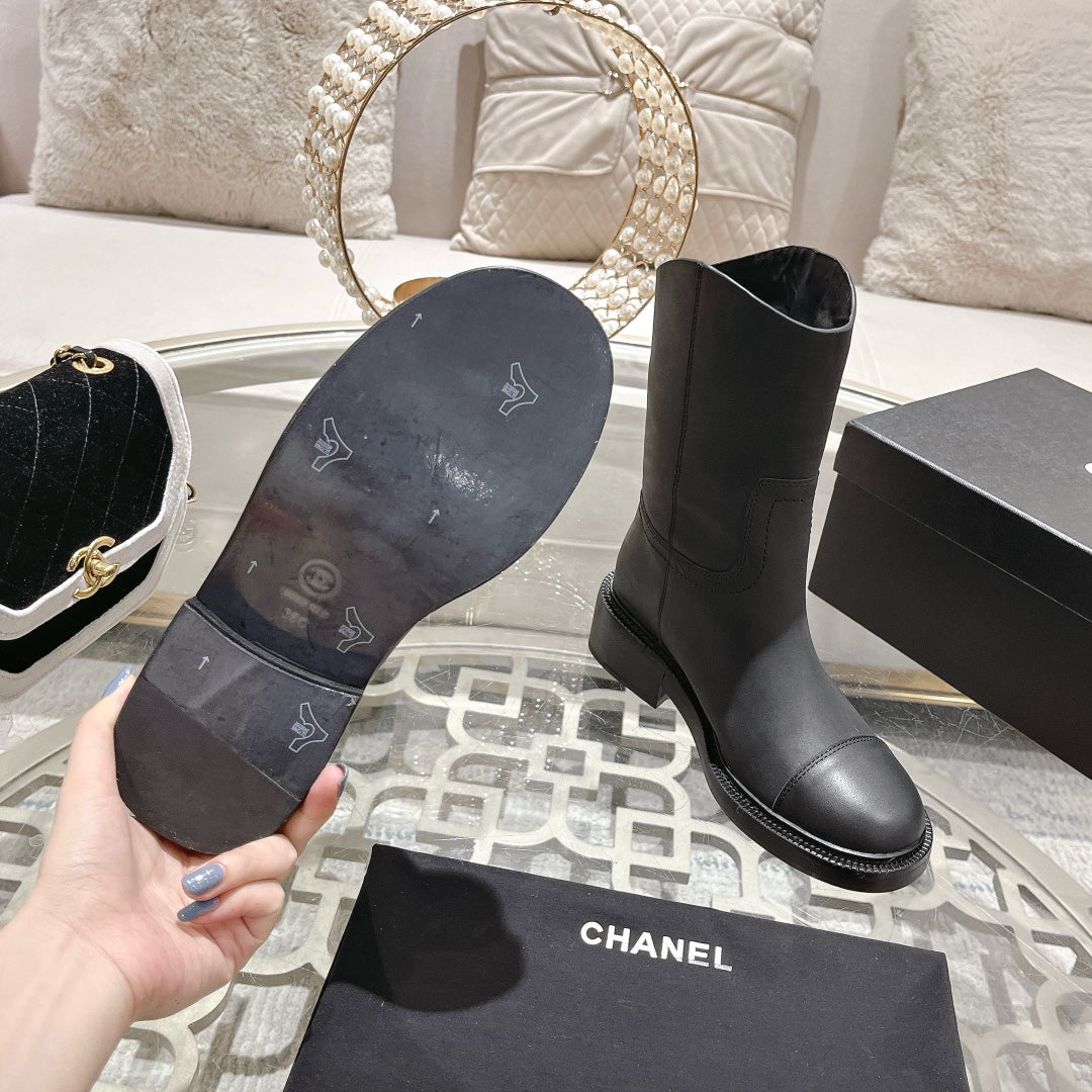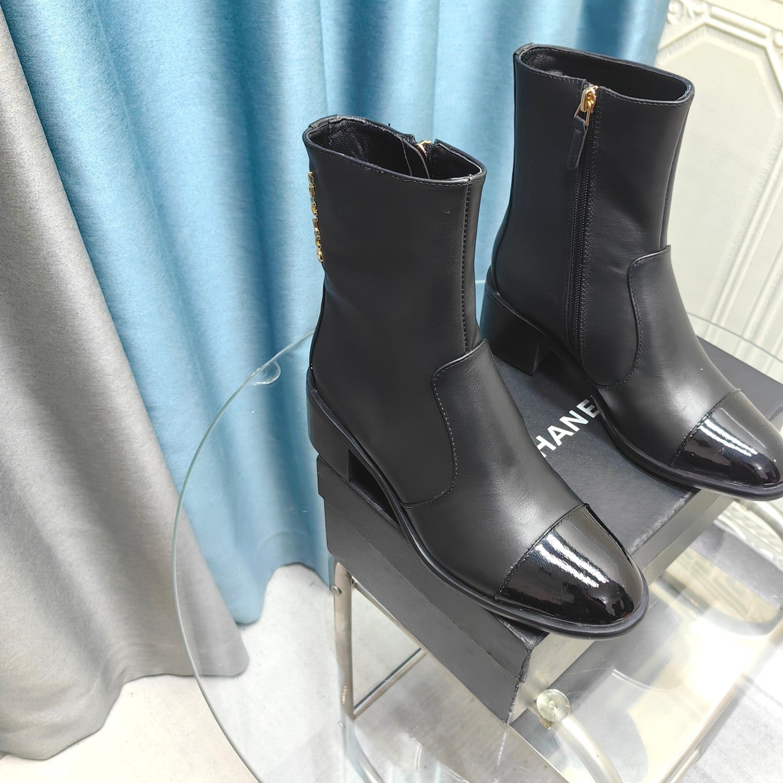 CC Short Boots Black Calfskin Lining Wool And Lambskin