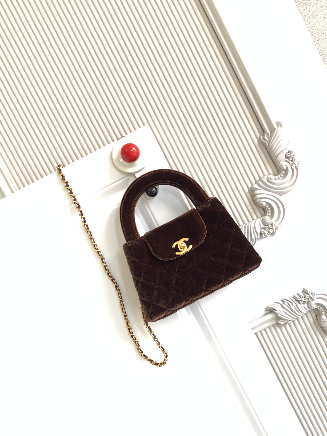 cc 24a nano 19cm kelly shopper bag chocolate brown velvet
