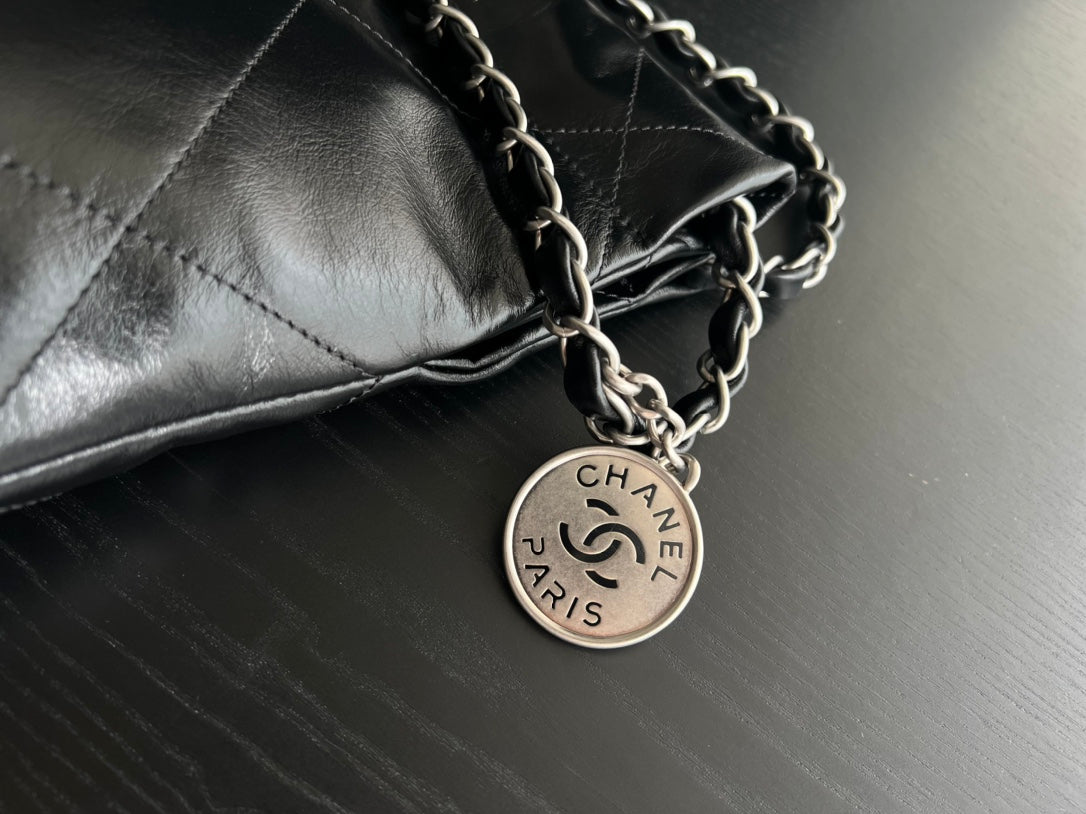 CC HOBO BAG 22 BLACK LAMBSKIN SILVER HARDWARE