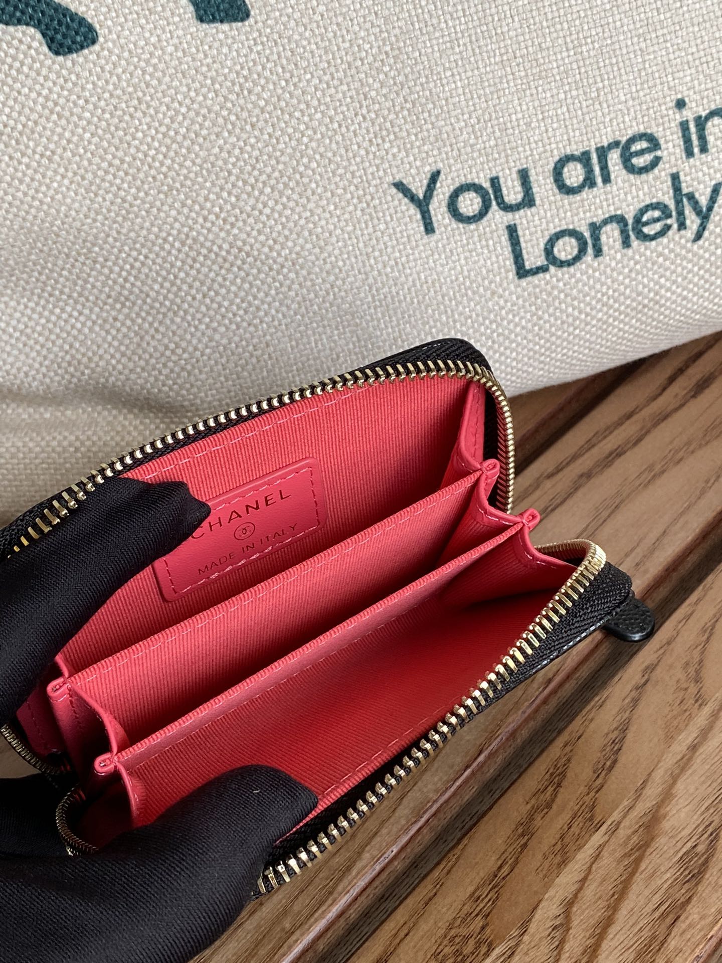 cc zipped wallet 11cm black caviar gold hardware
