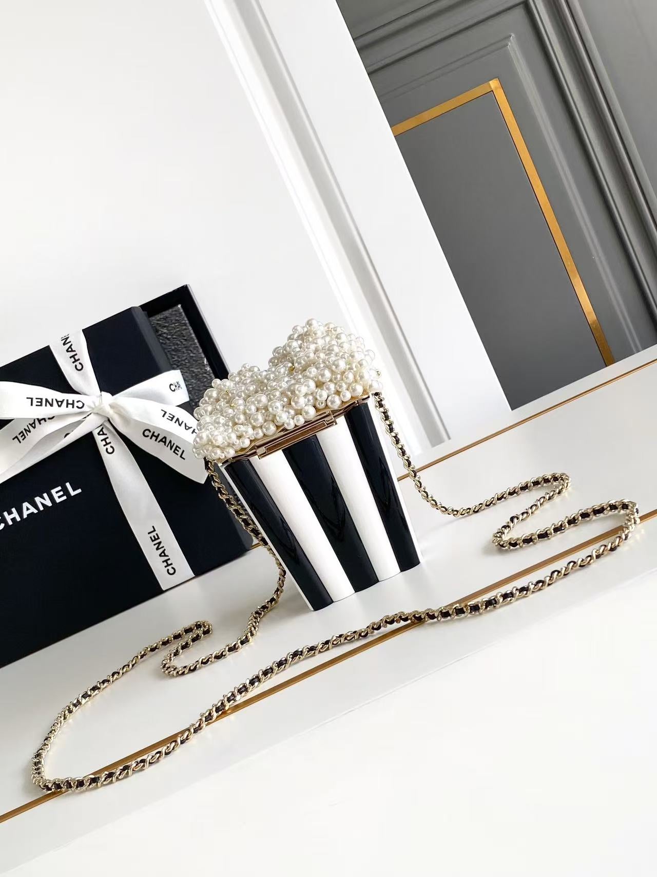 Chanel 25 Popcorn Minaudière Bag Black White Pink Resin