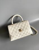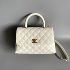 coco handle flap bag 23cm white quilted caviar light gold hardware