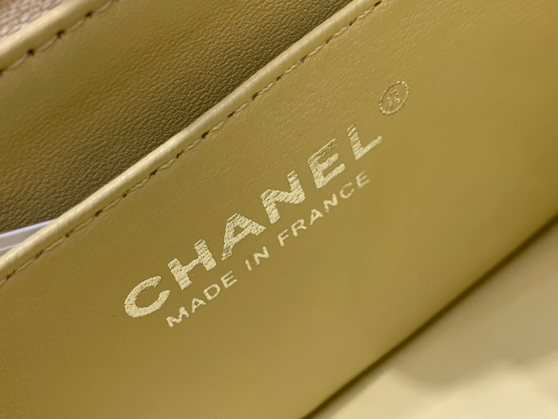 MINI SQUARE FLAP BAG 17CM YELLOW LAMBSKIN SILVER HARDWARE