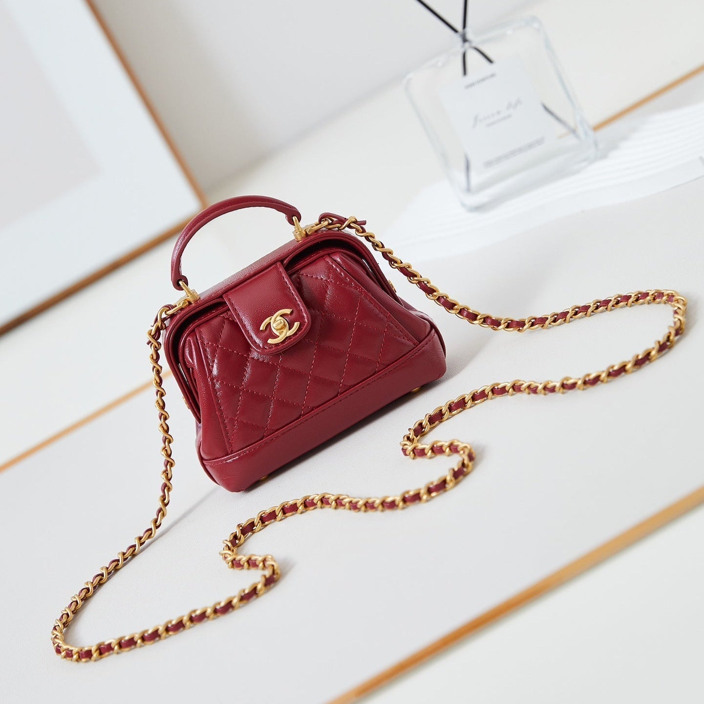 CC Flap Bag With Top Handle 19cm Wine Red Sheepskin Gold Hardware 238483