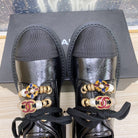 CC COMBAT OXFORD SHOES IN BLACK WRINKLED CALFSKIN AND GROSGRAIN WITH FAUX PEARL