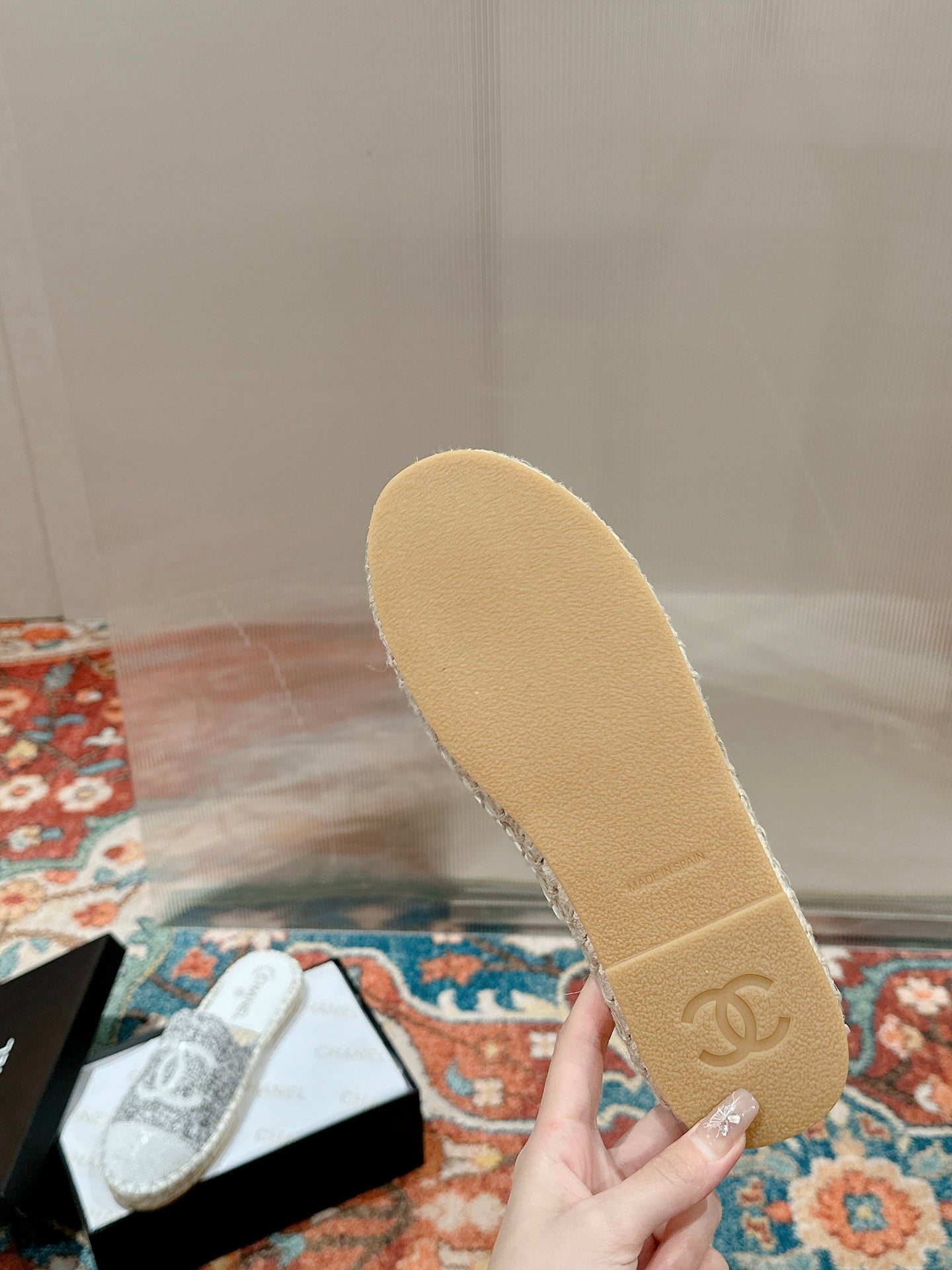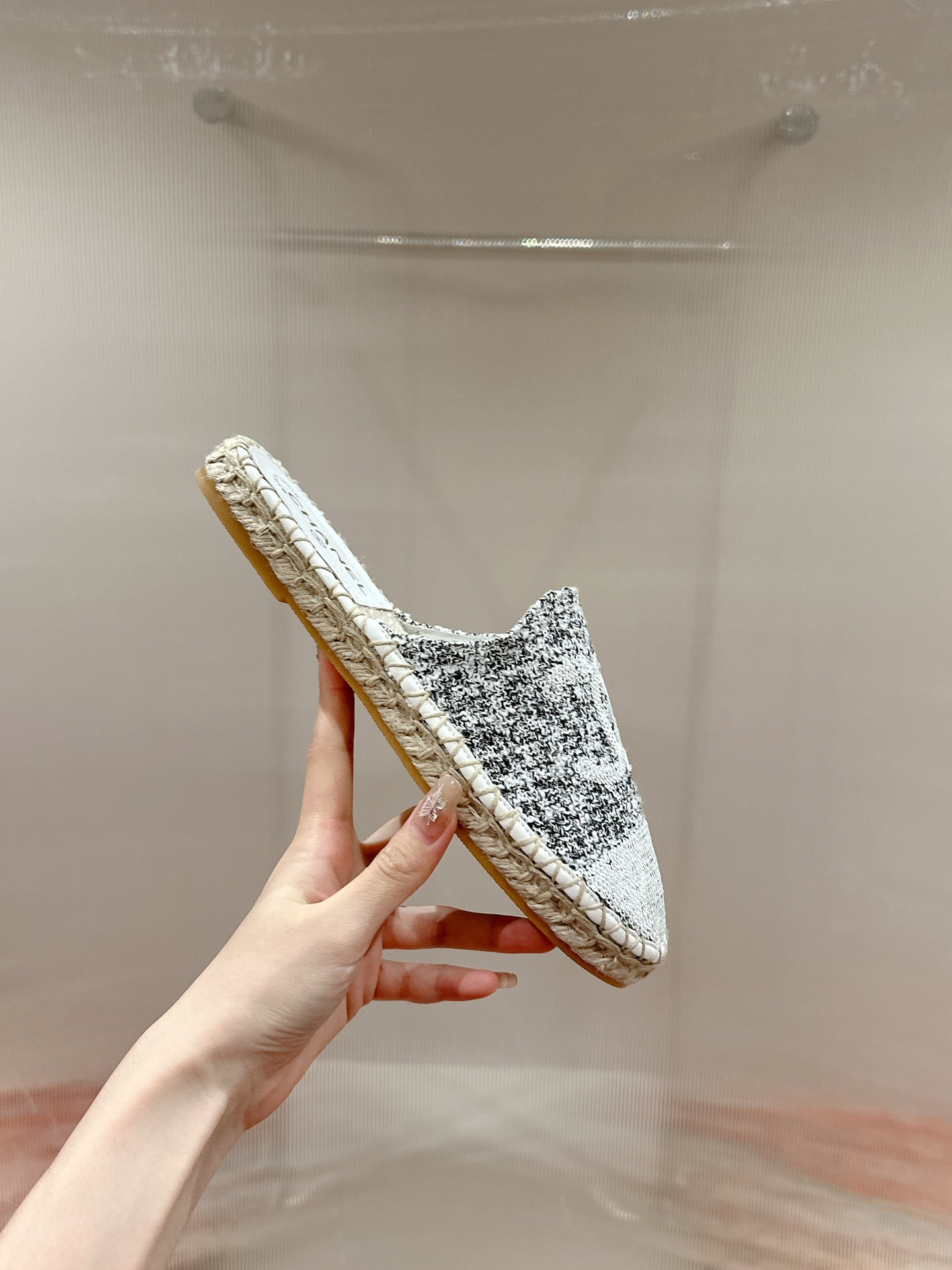 cc espadrilles mule grey fabric white sequin