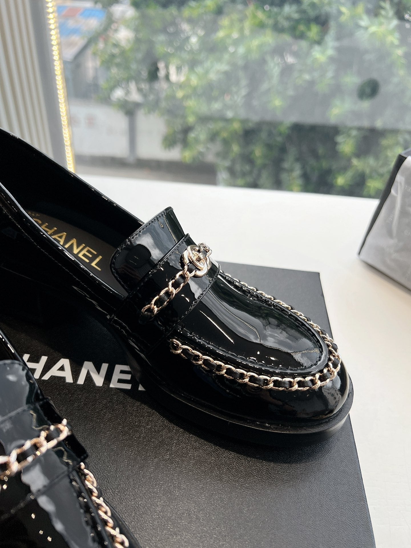 CC Moccasins Glossy Black Chain Lambskin