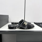 CC FLAT MULE IN BLACK WOOL TWEED AND CALFSKIN GOLD HARDWARE