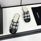 CC FLAT MULE IN WHITE MIX BLACK WOOL TWEED AND CALFSKIN