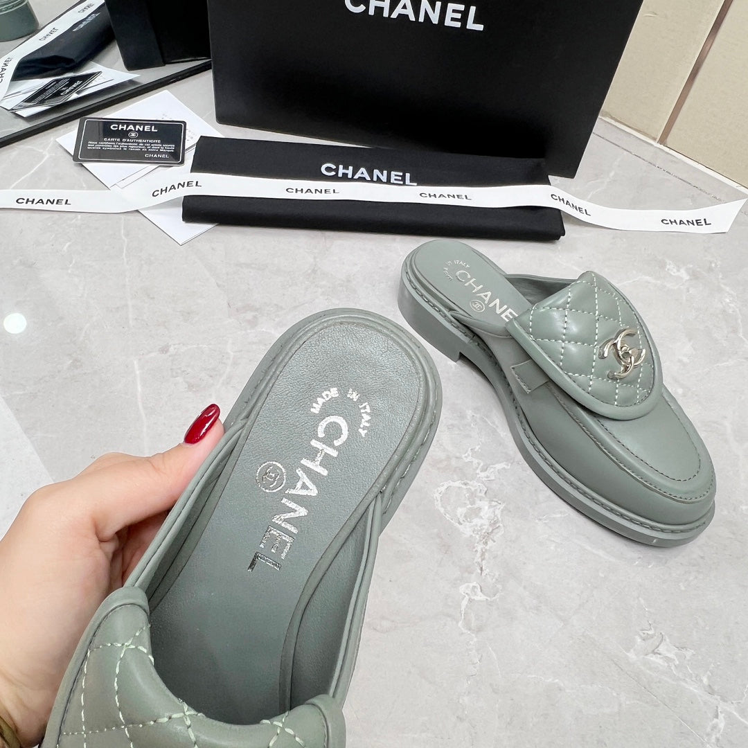 CC Mule Grey Quilted Calfskin