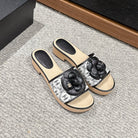 cc sandal flower white canvas black calfskin