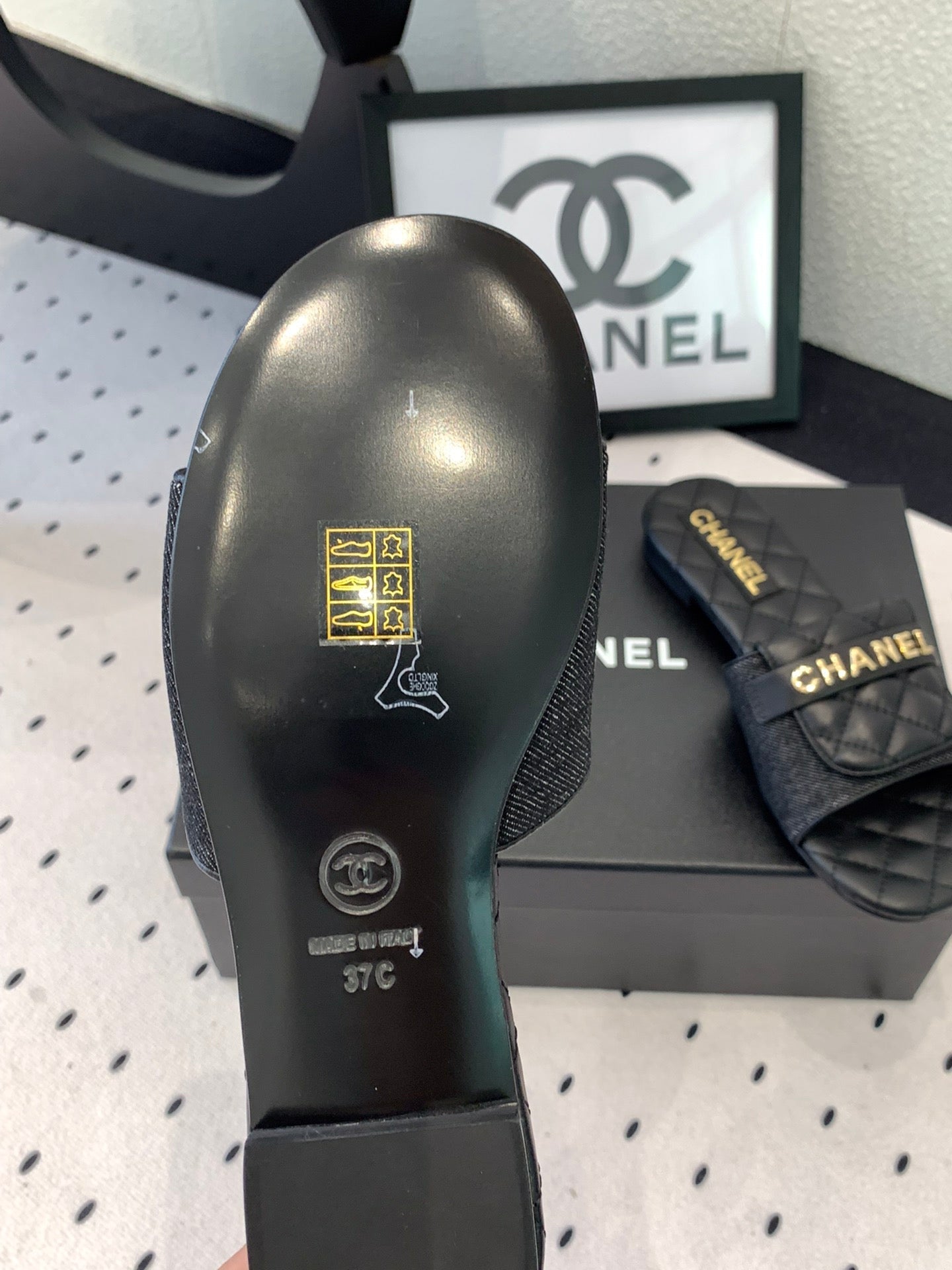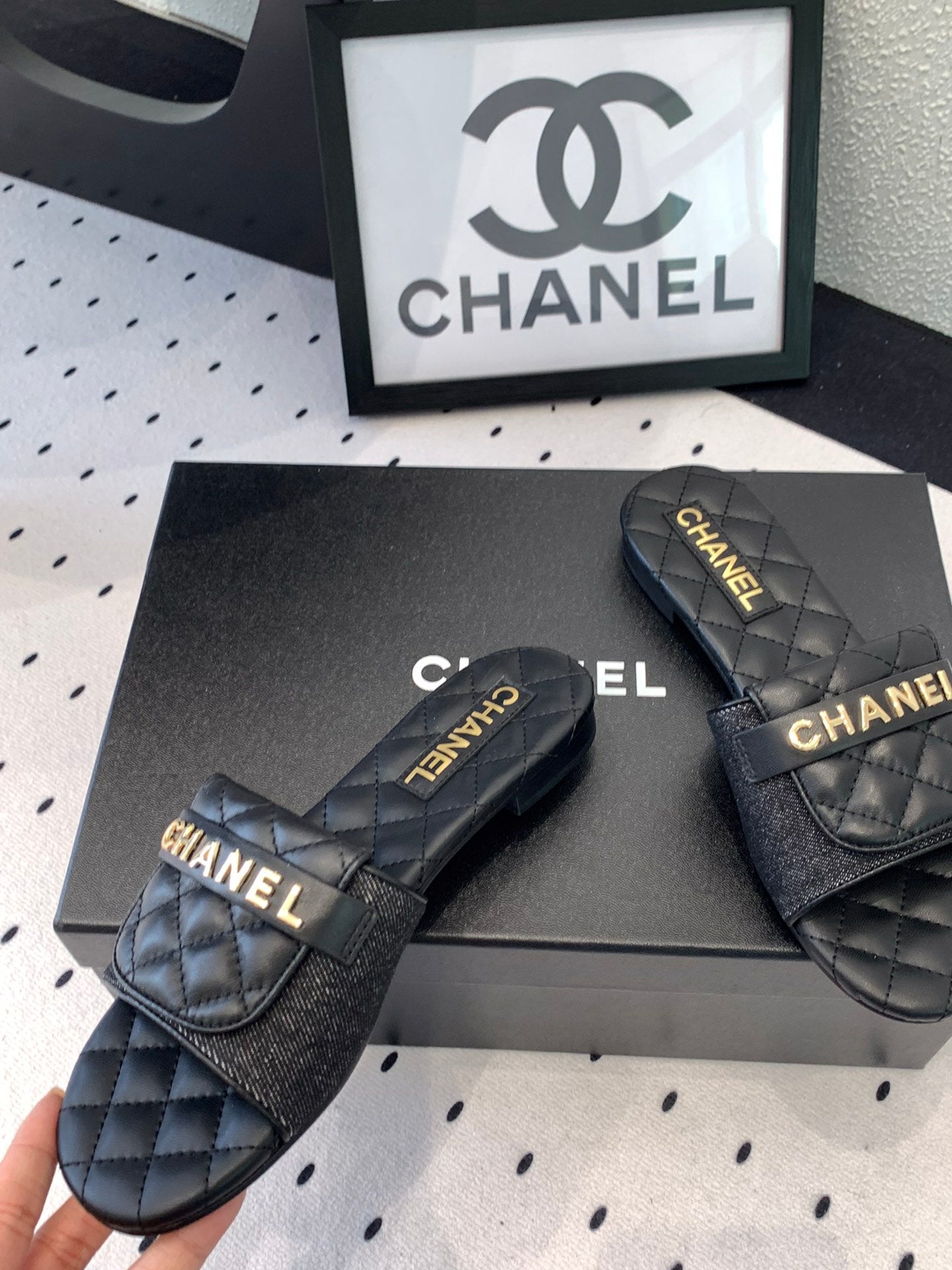 CC Slippers In Black Quilted Cowhide 147027