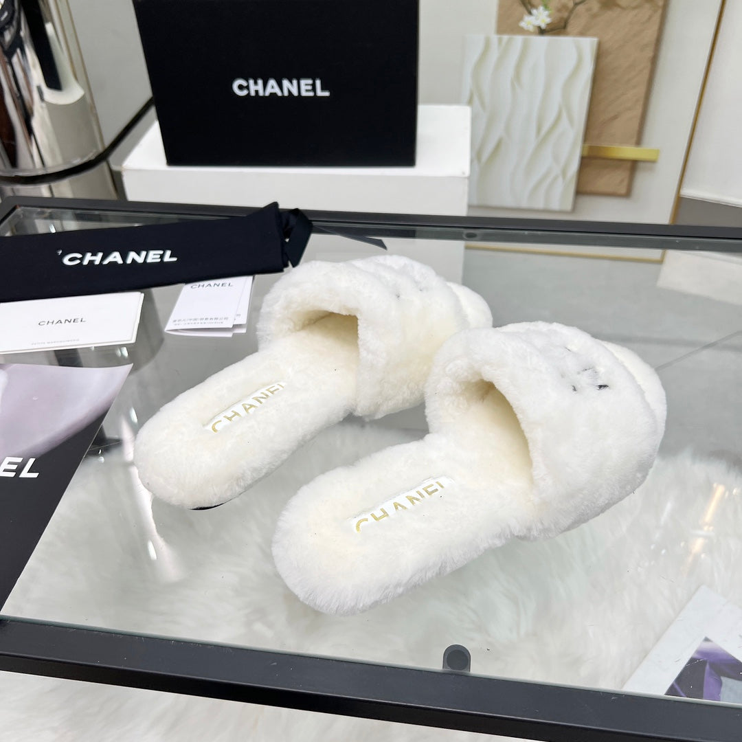 CC Slippers White With Black Lettering Fleece